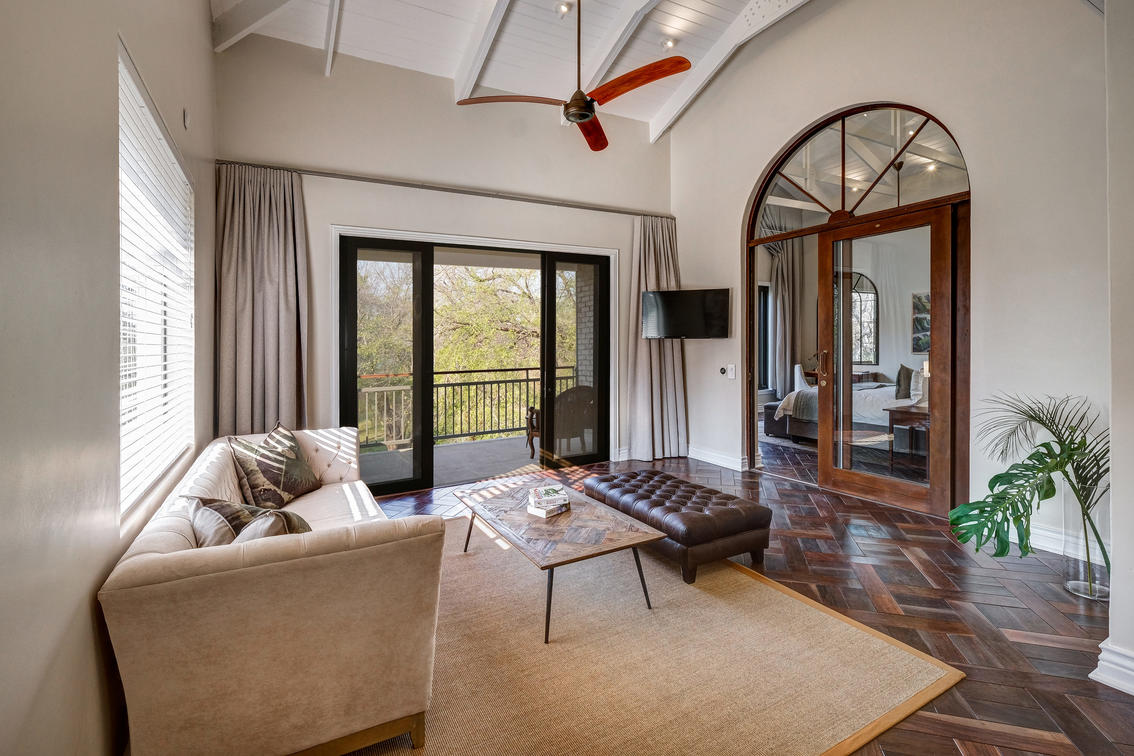 The Palm River Villa comes complete with a shared kitchen, dining area, spacious lounge, private car park, private swimming pool with an expansive patio and garden; shared only with free-roaming wildlife that frequent the lush lawns. The secluded space allows for families or small travel groups to have their own exclusive space, while immersed in the riverside location of the Palm River Hotel.