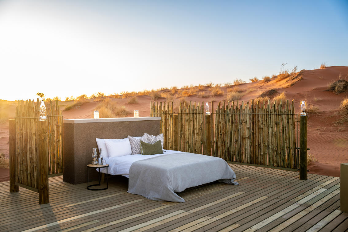 The Namib Desert sets the stage for an extraordinary dining location. Enjoy your sleep out with a simple dinner hamper under the vast African sky and wake up to a sunrise coffee with the dunes as your backdrop.
