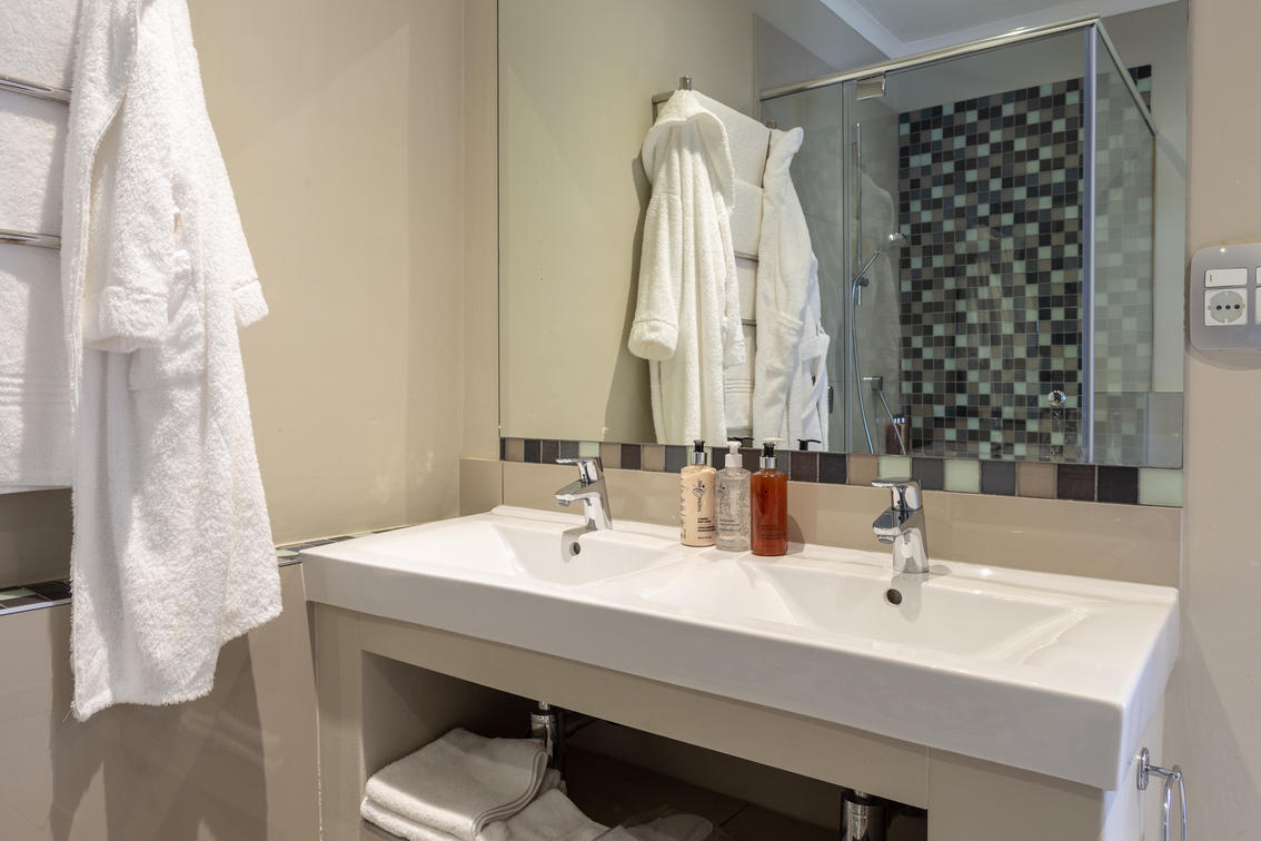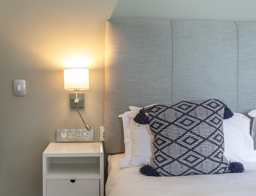Large, beautifully decorated twin room with 2 queen size beds and en-suite bathroom with bath and separate shower. Postioned on the 1st floor with a lovely distant sea view.