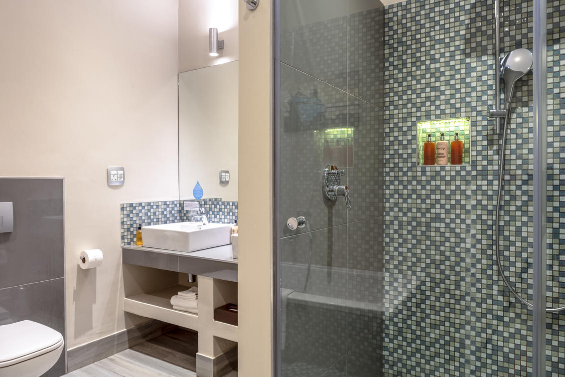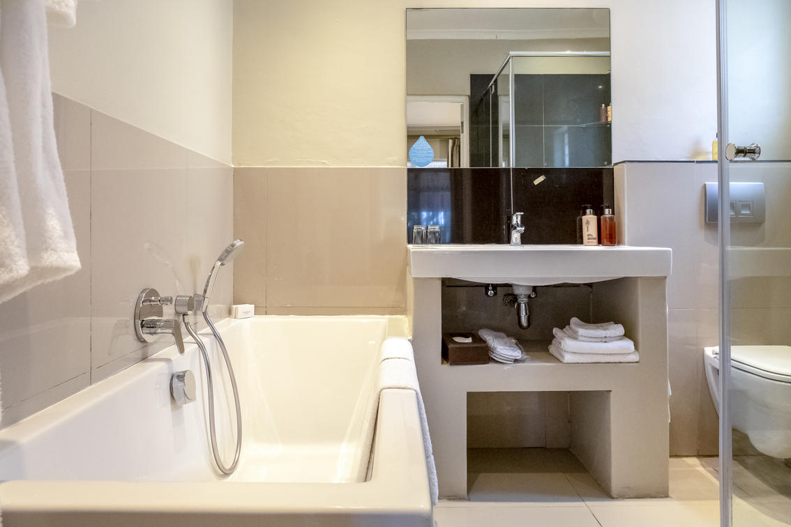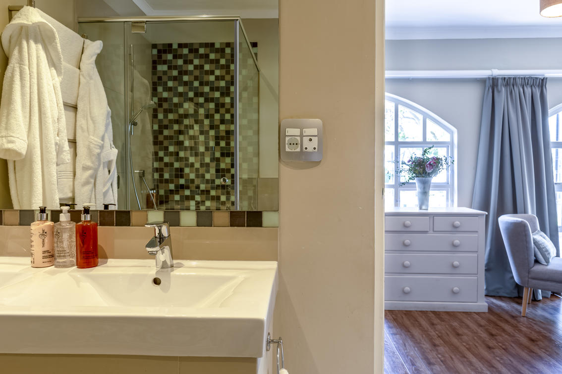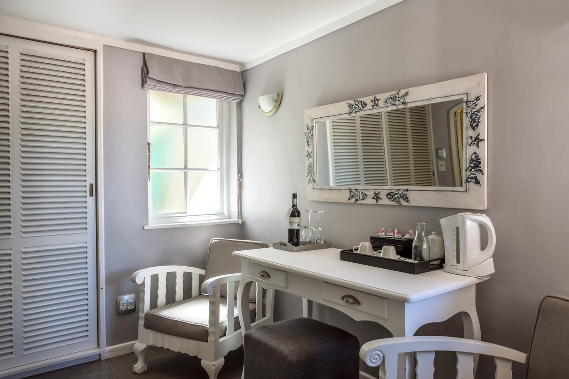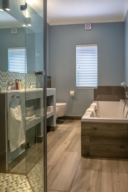 Our Executive Suite boasts a very spacious bedroom with open lounge area, leading out onto the private patio and garden pool area. With a lovely dressing room and luxury bathroom en-suite with bath and separate walk-in shower.