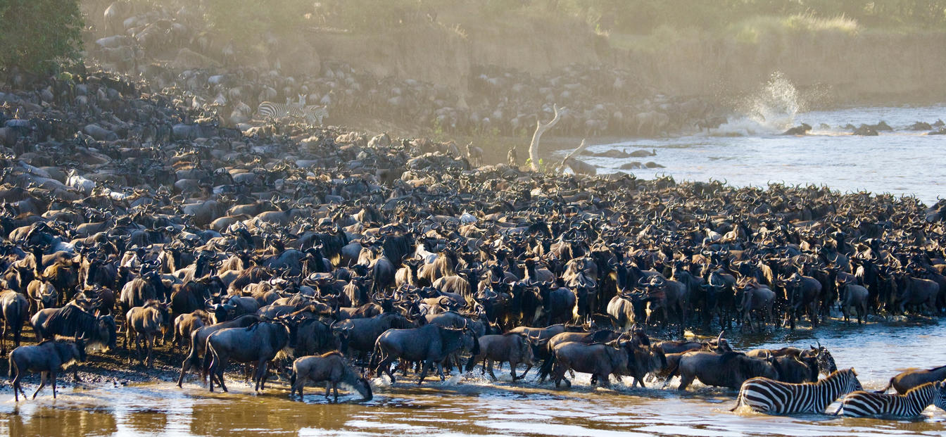 Experience the awe-inspiring spectacle of the Great Migration at Mara River Camp. Each year, millions of wildebeest and zebras brave the perilous river crossings, creating one of nature’s most dramatic events. As these herds plunge into the Mara River, they face the challenges of strong currents and lurking predators. Witnessing this epic journey up close offers a profound connection to the raw power and beauty of the African wilderness. The river crossings are a testament to the resilience and instinctual drive of these magnificent creatures, making it a must-see highlight of your safari adventure. Located less than 3 km from the Mara River, Mara River Camp offers the perfect vantage point to witness this extraordinary event.