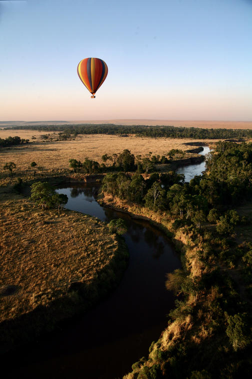 Experience the Serengeti from above with a balloon safari near Mara River Camp. This thrilling adventure offers panoramic views of the Northern Serengeti’s vast landscapes and the dramatic Great Migration. As you gently float over the plains, witness herds of wildebeest and zebras navigating treacherous river crossings, all illuminated by the golden light of dawn. The serene flight provides unparalleled photographic opportunities and a unique perspective on the diverse wildlife below. Concluding with a champagne breakfast in the heart of the wilderness, this unforgettable experience combines adventure with luxury, creating lasting memories of your African safari.