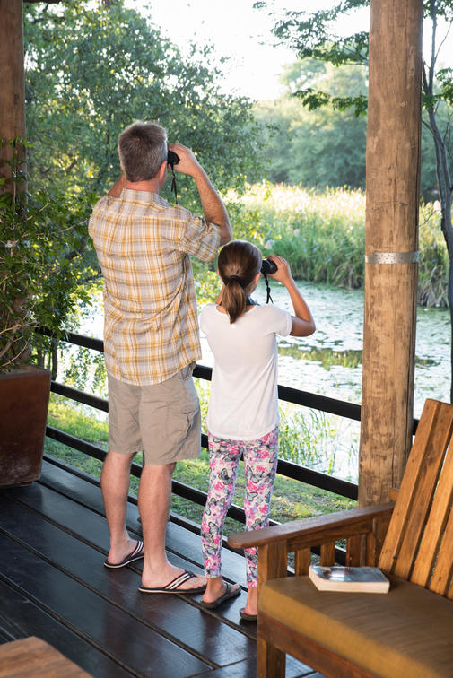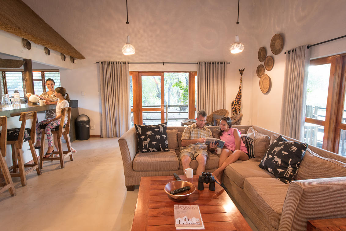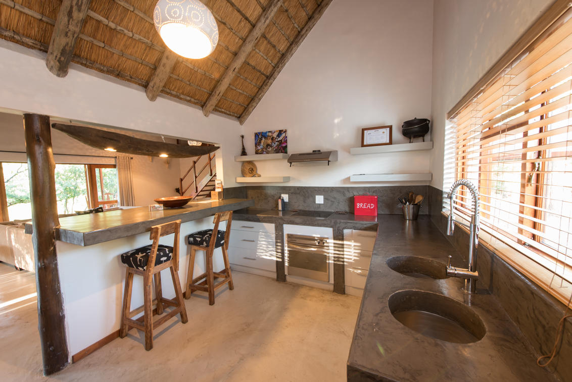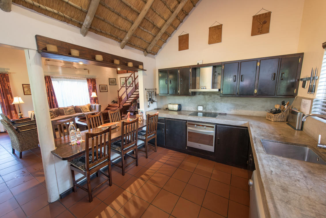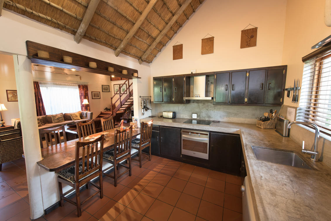 The luxury self-catering safari houses have spacious lounge with satellite TV, fully equipped open plan kitchen, 2 bedrooms with en-suite bathroom, guest bathroom a loft with 3rd bedroom and private wooden deck. All houses have a dam view