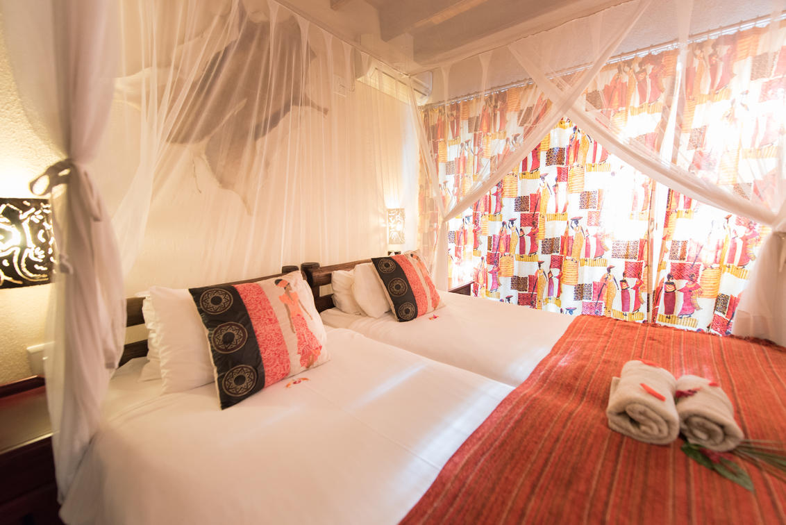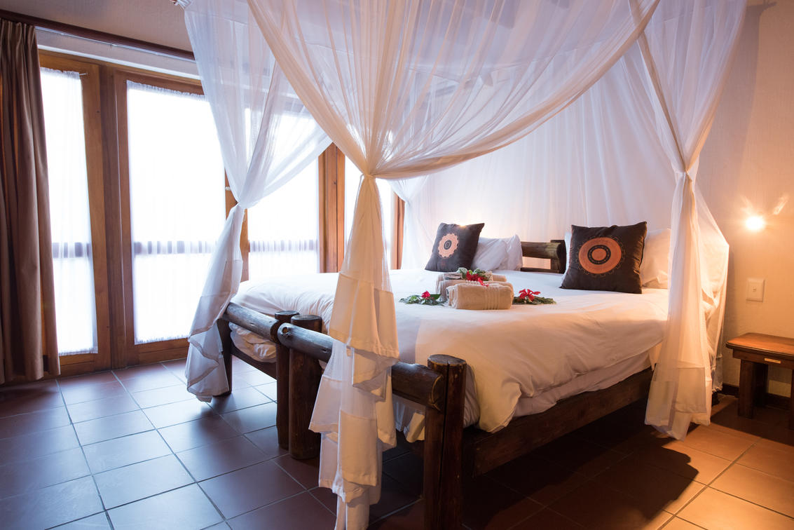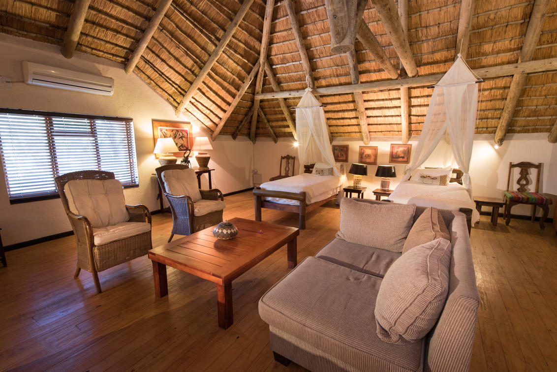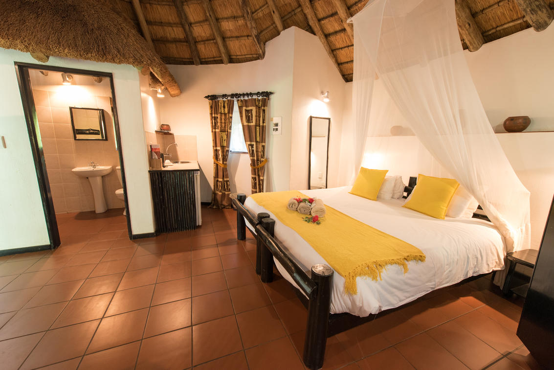 Consists of double and twin beds, en-suite bathroom with shower, toilet, fridge, coffee/tea making facilities, alarm clock, hairdryer, air conditioning, private veranda and private parking. The rondavels are situated amidst tropical gardens some with dam views.