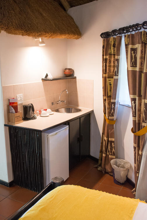 All have twin beds, en-suite bathroom with shower, toilet, fridge, coffee/tea making facilities, alarm clock, hairdryer, air conditioning, private veranda and private parking. The rondavels are situated amidst tropical gardens some with dam views