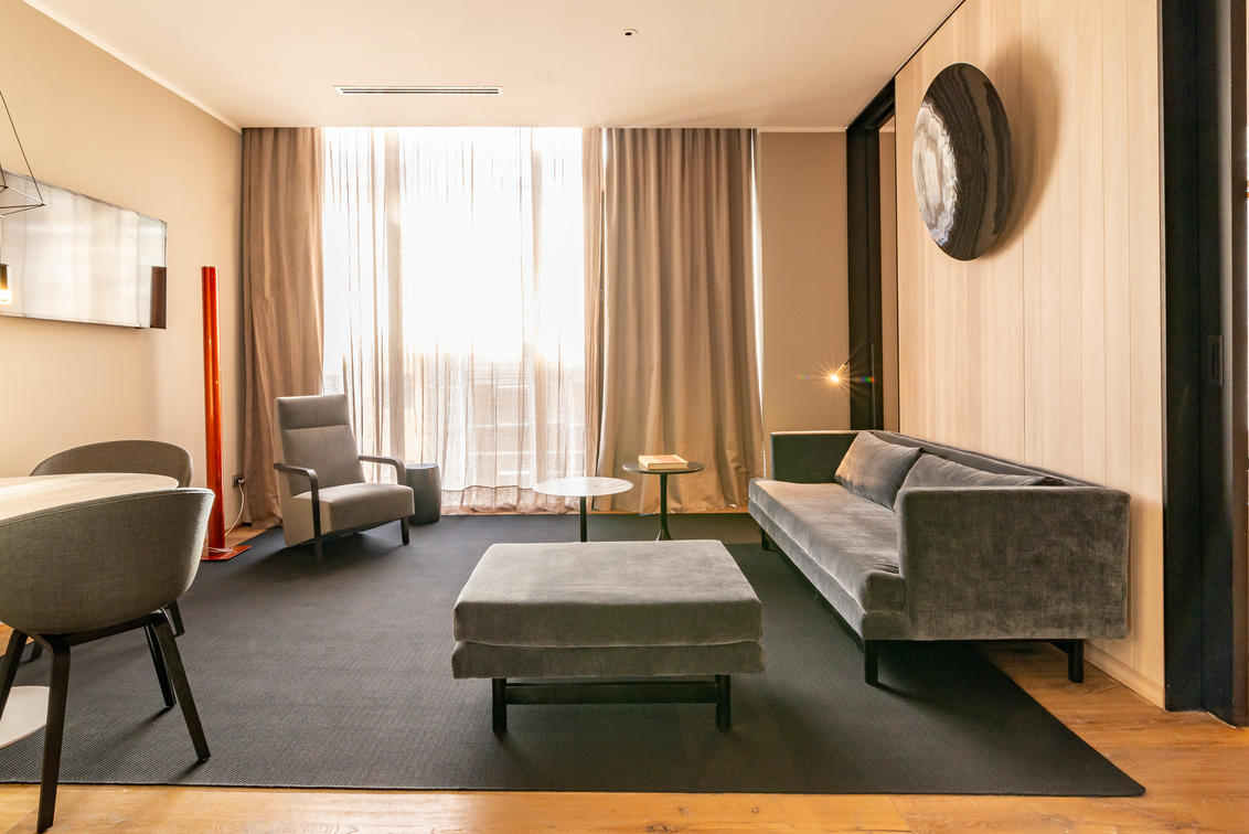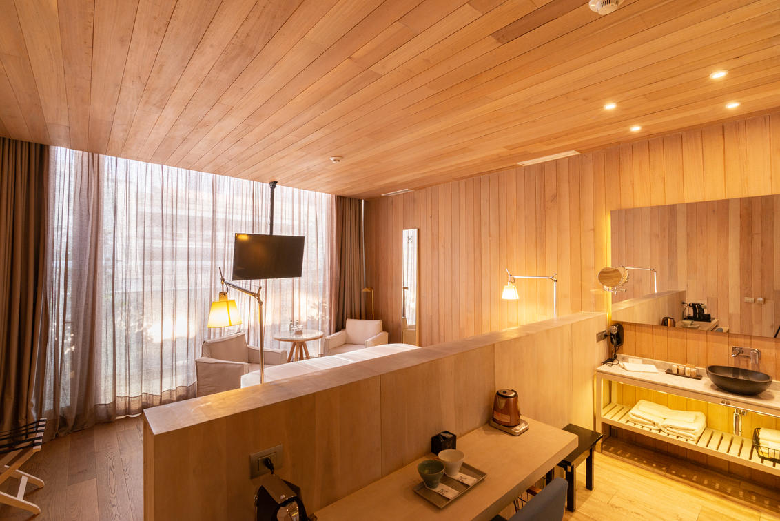 Between the fourth and sixth floors of the Hotel Magnolia are the Junior Suite rooms. In an environment where different colors and textures are appreciated, these rooms have an area of ??40m2, and each of them has its own living room, designed so that our guests have the best rest. In addition, our Junior Suites have a unique design, since they are completely covered in wood, offering guests a space where they can disconnect from the world and let themselves be carried away by their refuge-type setting, providing a sensation that will make them feel protected. from the outside world. Each suite has an audio system, Smart TV, integrated climate control, coffee and tea station, courtesy local calls, selection of magazines, and high-speed Wi-Fi.