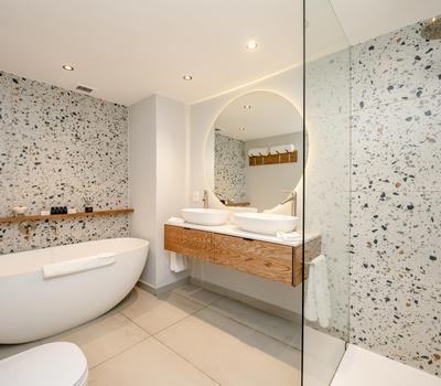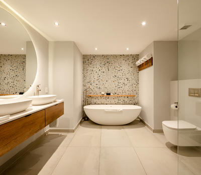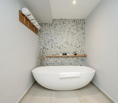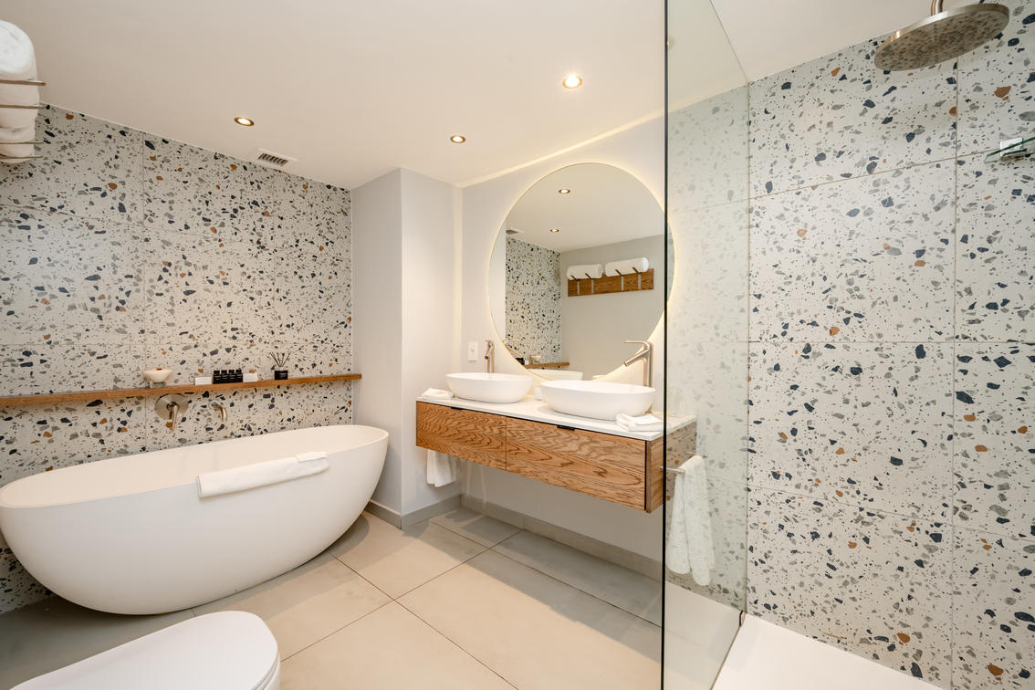 The suites has spacious living areas, a balcony with romantic outdoor bath, breath taking ocean views and are positioned to capture a maximum amount of sunlight, perfect for sun-worshippers. Sofa bed for two children 3-14 years old to share. For children up to 3 years old, a cot can be provided.