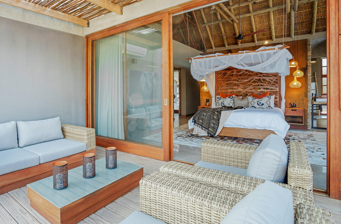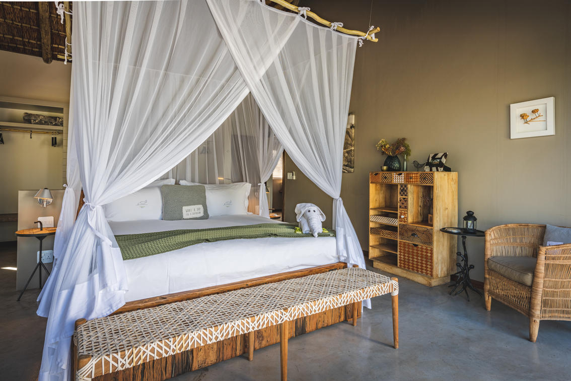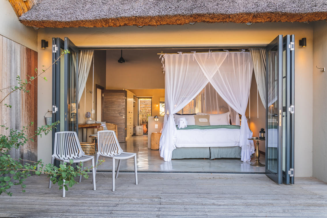 Amukela Lodge is situated on the banks of the magnificent Sabie River, providing spectacular views over the river which is frequented by hippos in the early mornings, and elephants in the afternoons. This lodge is an authentic African masterpiece with its own allure, boasting a gym with a view of the river, as well as a chlorine free pool, private deck, private boma, private parking, free WiFi, en-suite bathrooms, living areas, dining areas, kitchen, sensory comforts and intuitive service. Fully furnished to an exceptional standard, the design and décor blends perfectly with the bushveld surrounding the lodge, while still offering bespoke luxury and comfort. Amukela is also almost entirely solar powered.