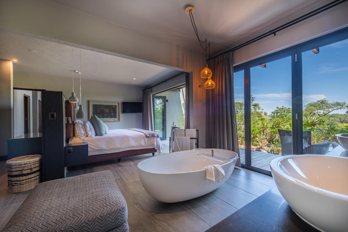 Along with a stunning panoramic view of the Sabie River and Kruger National Park, this lodge is also situated next to a wildlife corridor which allows game to roam freely around the lodge. The carefully thought-out design and expansive outdoor living and lounge areas make the views from Mavalanga Lodge unique and brings the ‘Big Five’ experience to you 24/7.