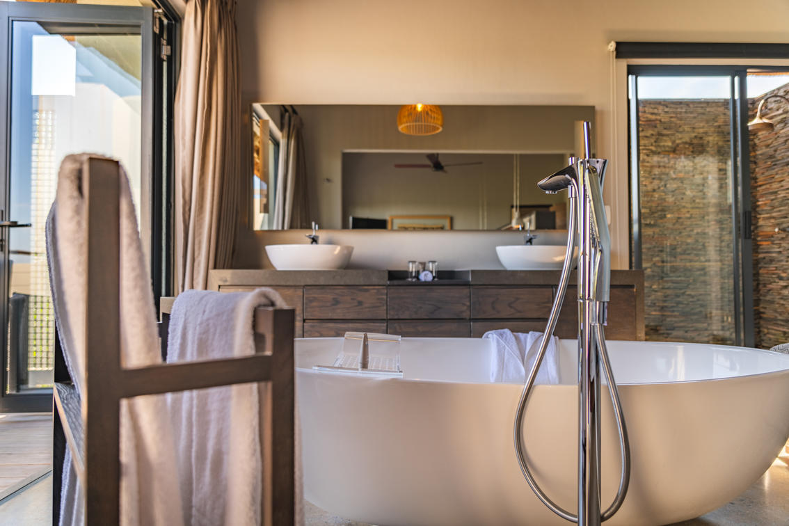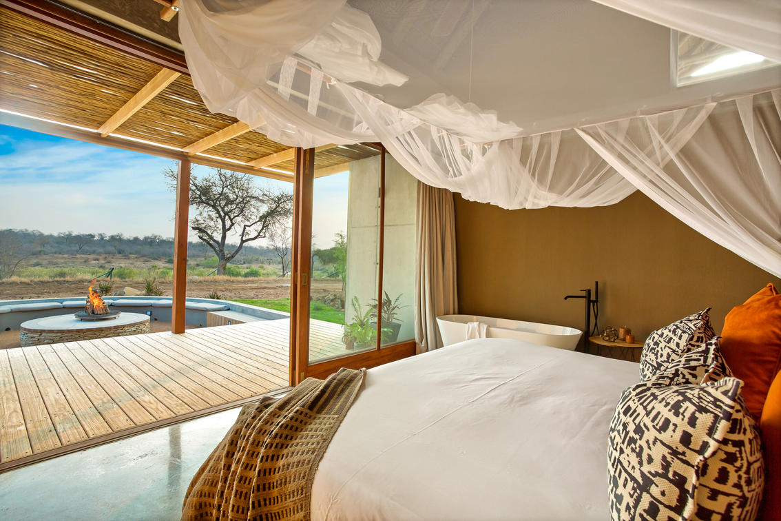 Nambu Kruger Lodge is perfectly positioned within close view of the mighty Sabie River, and beyond into the Kruger National Park. A unique lodge combining intimacy with sociability, this is ideal for families or a group of friends. Take in the 180-degree Sabie River views from the raised terrace area, or enjoy some downtime in one of the two indoor suites, or two connected luxury tents. What's more, this lodge offers a unique selection of activities for young and mature guests, such as an enclosed garden with a jungle gym and trampoline, a heated infinity pool, a games room with a pool table, and a pétanque track at the boma for added excitement. For those wanting a truly immersive bushveld experience, spend some time at the outdoor bar, cool off in one of the outdoor showers, or by night, sleep under the stars on the wheel out bed on the viewing terrace.