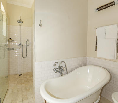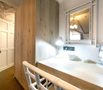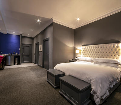 Eclectically decorated Deluxe en-suite air-conditioned room with a choice of extra-length king or twin beds, free WI-FI, flat screen TV with satellite channels. Complimentary tea and coffee served all day.