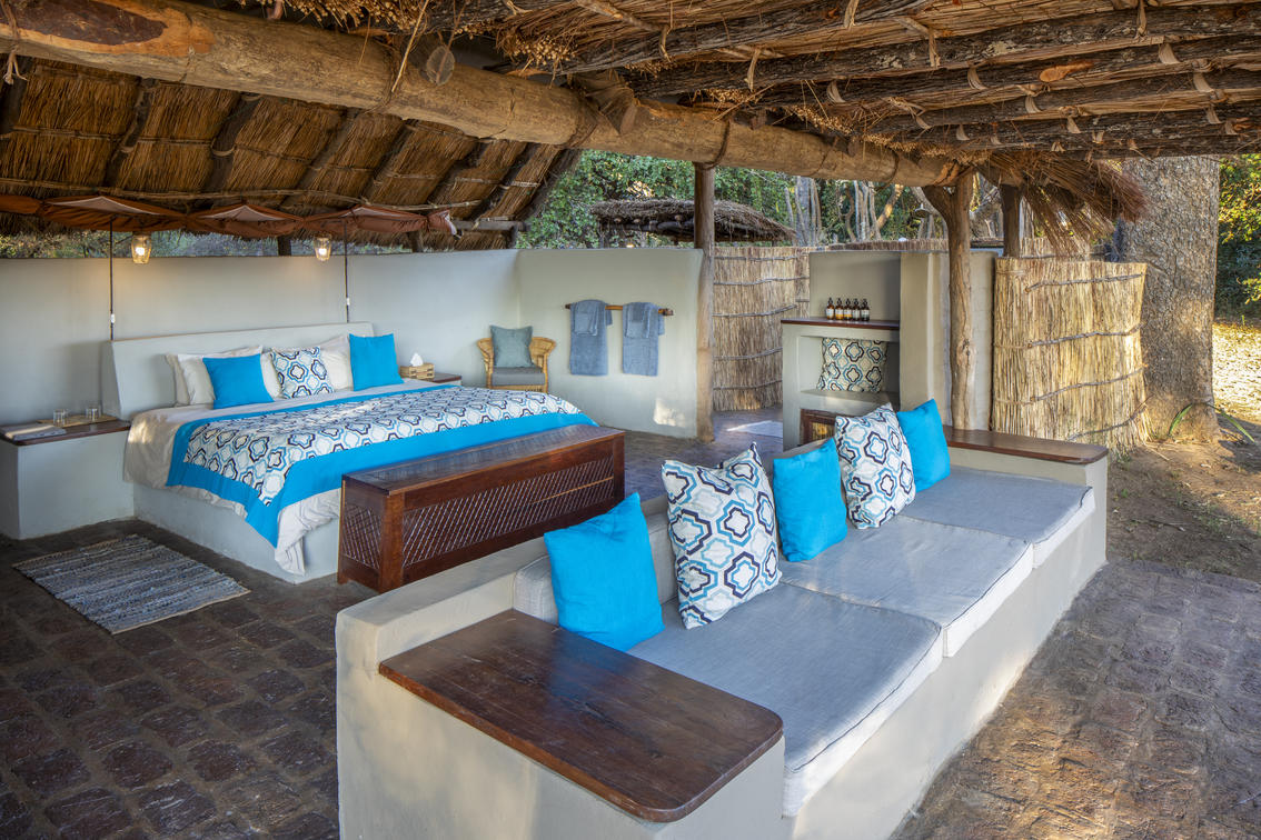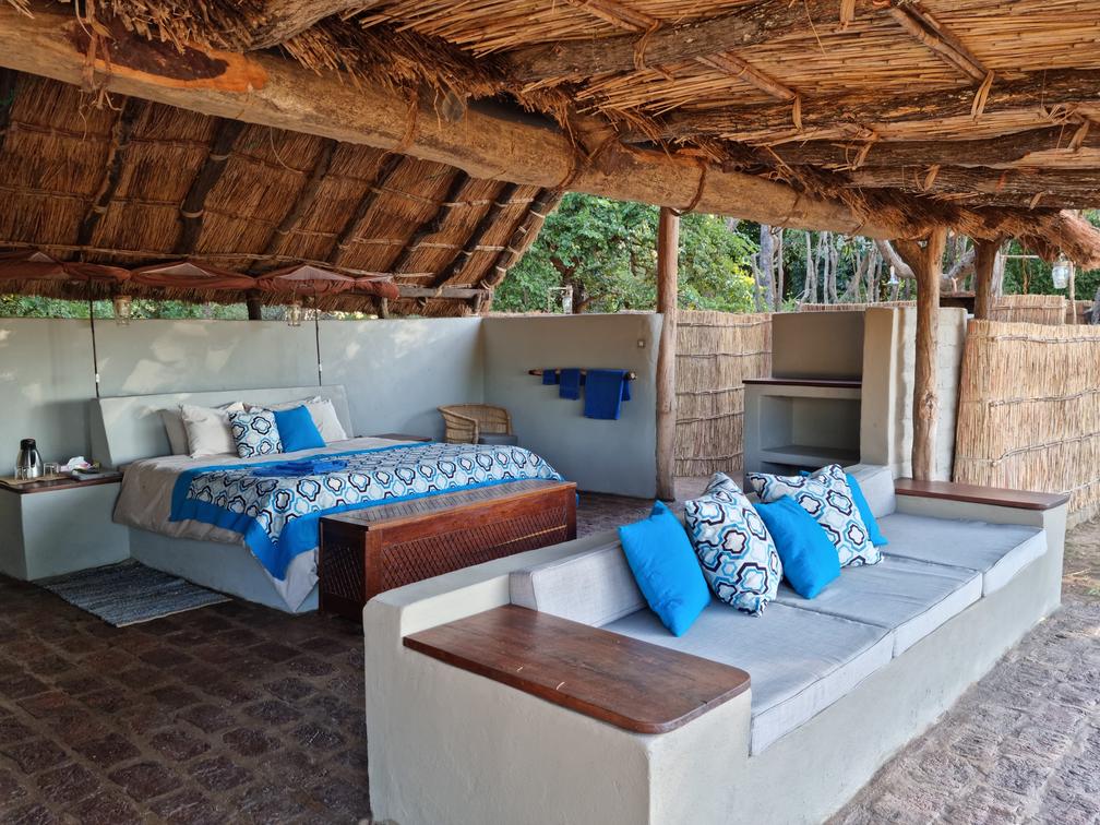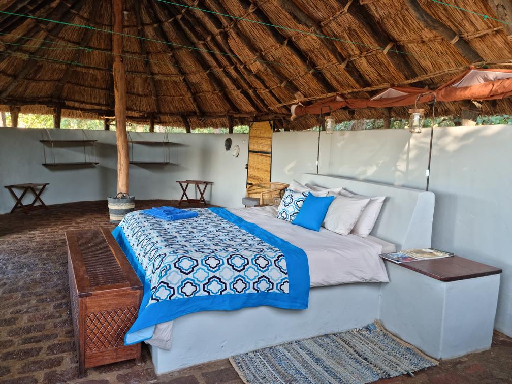 Single king bed chalet. En-suite facilities with shower, basin and toilet. Running water with hot water available at all times. Verandah looking out over the river. Brick base with natural thatch walls and roof made from natural materials and local skills.