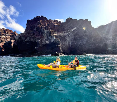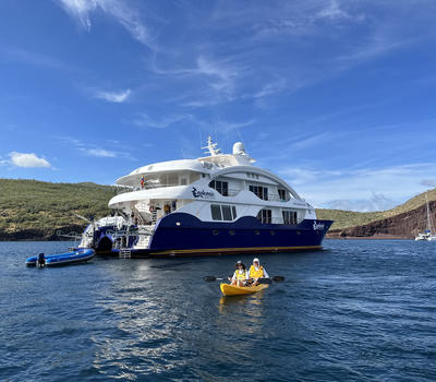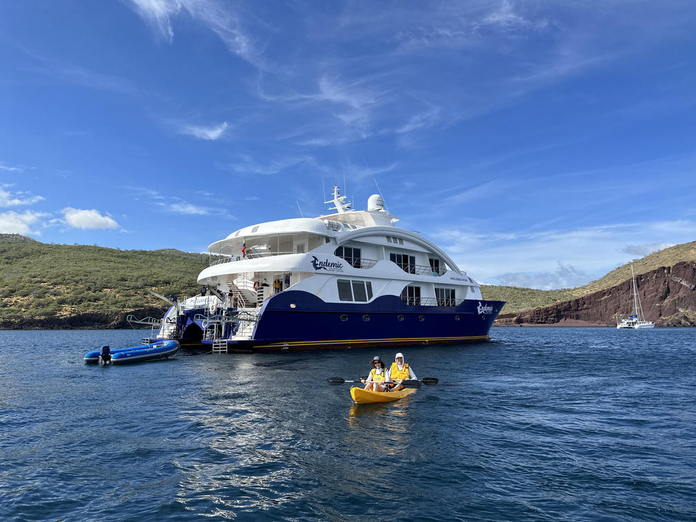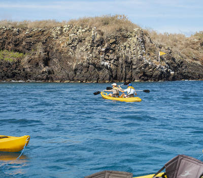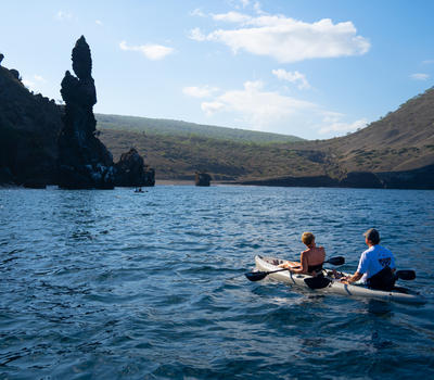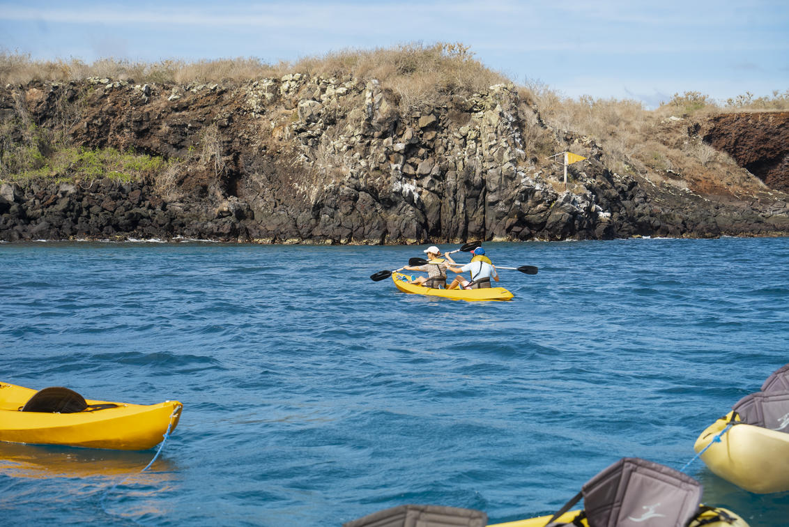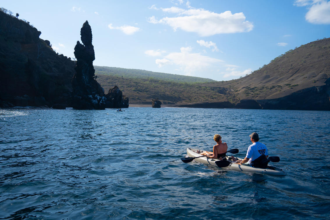 Kayak serenely through the Galapagos archipelago, navigating azure waters alongside volcanic landscapes. Marvel at the unique blend of aquatic and terrestrial life as you cruise past sea lions, marine iguanas, and iconic blue-footed boobies.