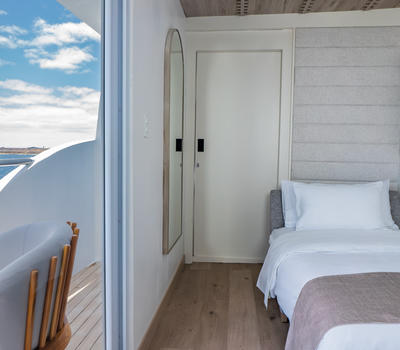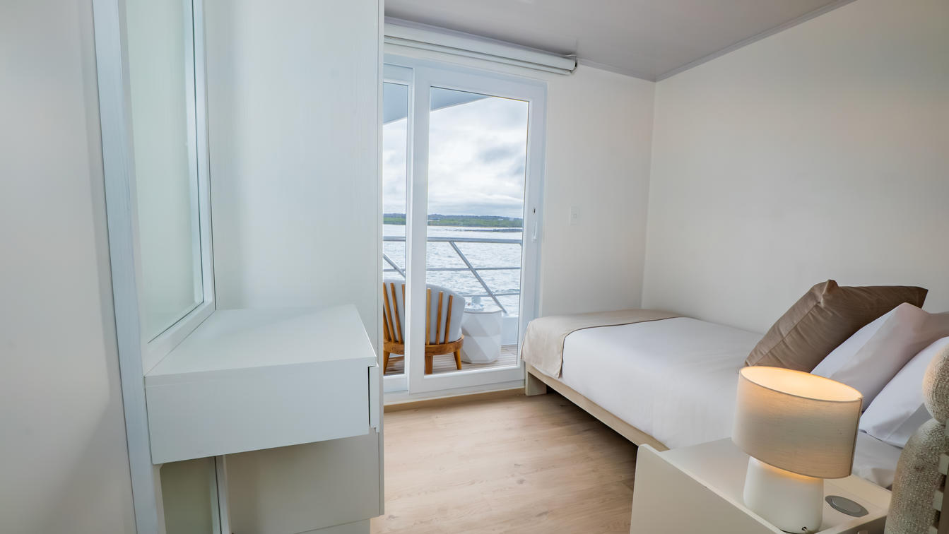 Our single cabin, which has the same main facilities as the Golden Suites, such as a private balcony, private restroom, sliding glass door to enjoy the view.
