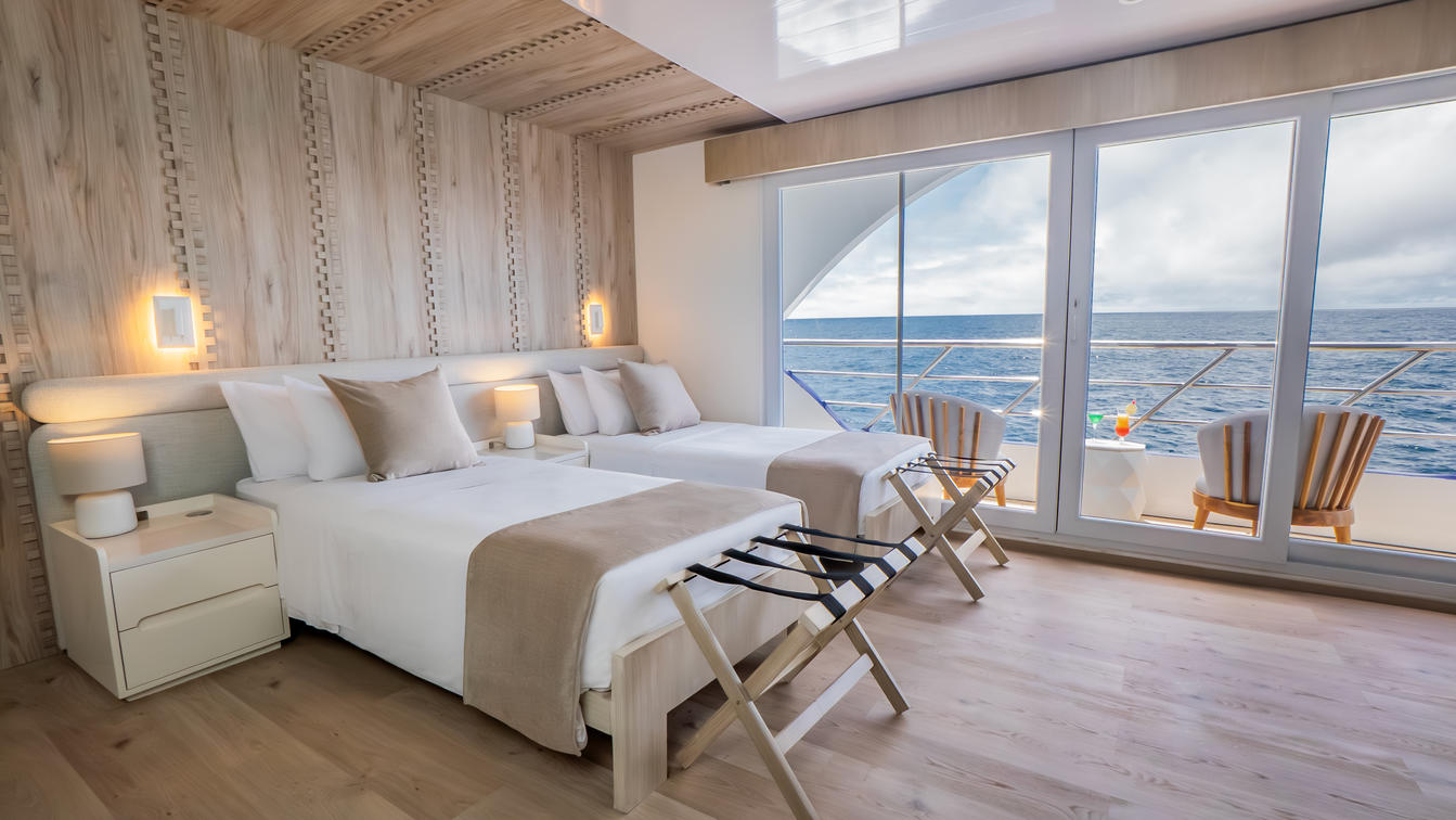 Each of the Endemic Cabins has personalized air conditioning control, a balcony, a spacious private bathroom, and either a king-size bed or two twin-size beds. Naturally, each cabin also boasts closet/drawer space as well as a writing desk and strongbox.