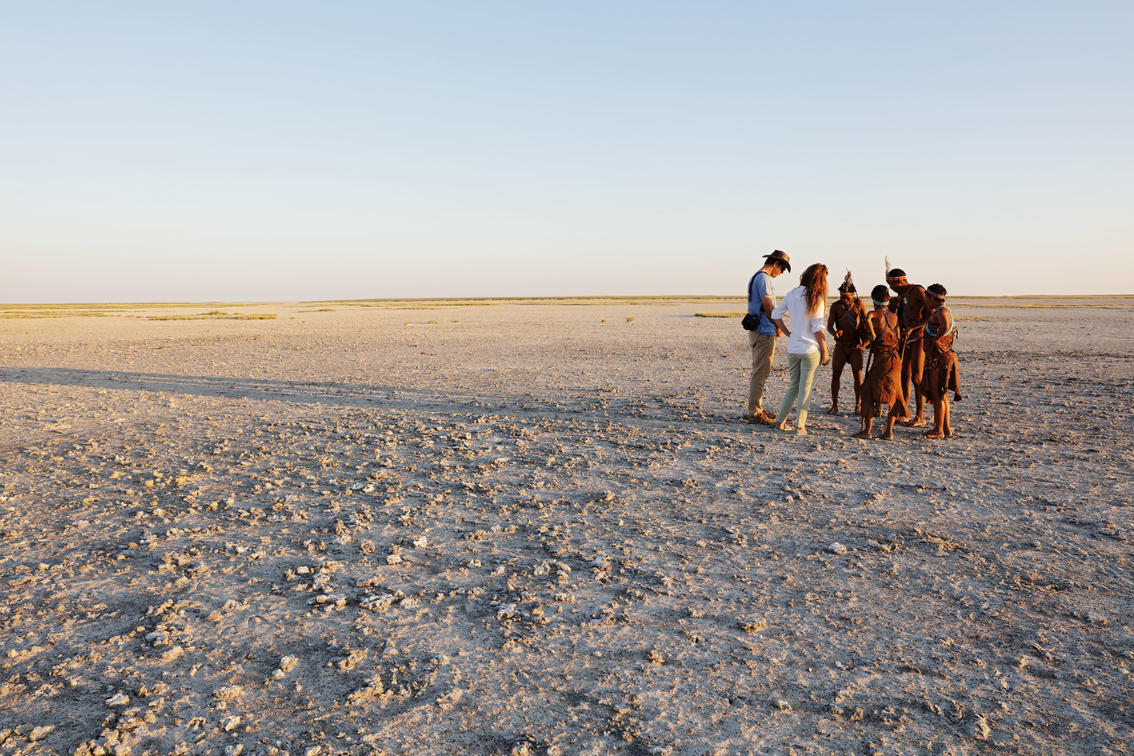 Discover the secrets of the pans with the Zu/’hoasi Bushmen on a fascinating bush walk. See this ancient desert landscape through their eyes. These skilled hunter gatherers will show you how to survive, using their extraordinary tracking skills to uncover a smorgasbord of culinary delights... from bulbs, to scorpions, to berries. Spending time with them is a very rare privilege.