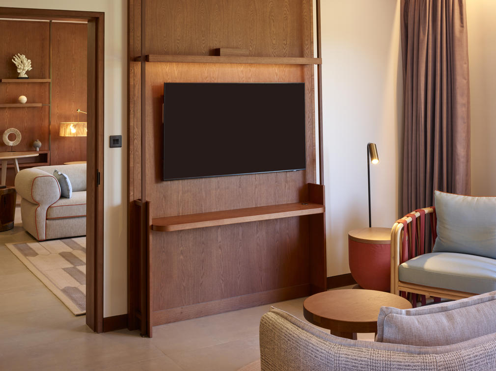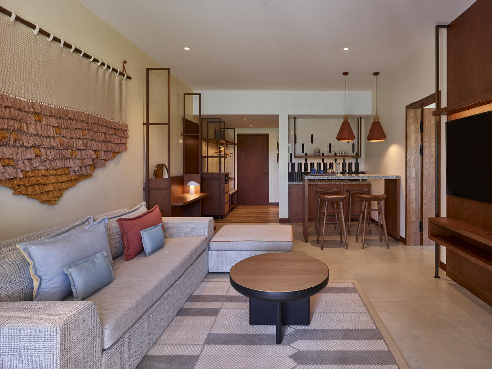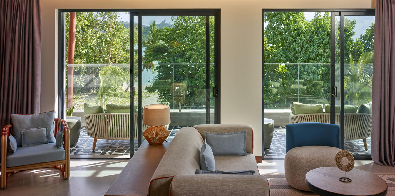 This suite benefits from a separate living area with a sofa bed and an extra bathroom for guests. Enjoy a meal around the dining table, which seats 8. A 32 sq. m. terrace with ocean view and sun beds gives you ample outdoor space for relaxing.