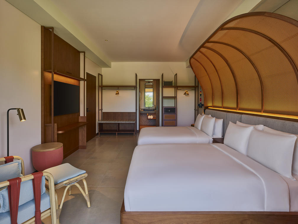 A delightful room with two queen-sized beds, offering serene garden views from the balcony. Enjoy the convenience of an expresso machine, an expansive walk-in shower, and thoughtfully curated welcome gifts. Other amenities include an in-room safe and ironing facilities. The room accommodates up to two guests.