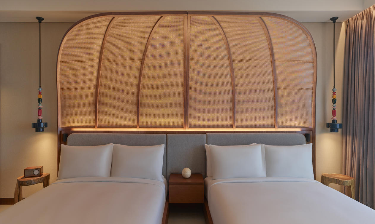 A contemporary oasis for two, this room features two queen-sized beds and a balcony with stunning views of the pool. The bathroom has a spacious walk-in shower, and there's an espresso machine on hand for those early-morning caffeine hits. Enjoy a welcome gift upon arrival. Other amenities include an in-room safe and ironing facilities. The room sleeps two comfortably.