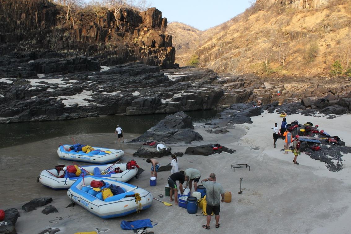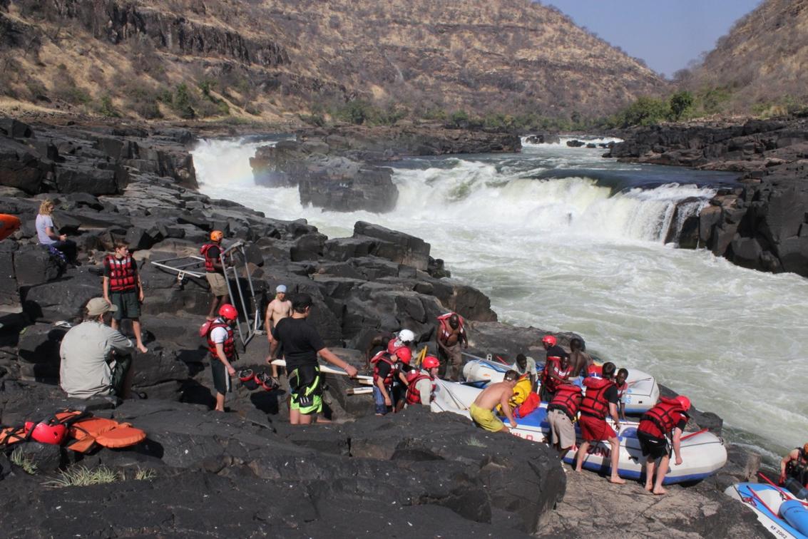 Day three is another hard working day. We paddle 2km of flat water before we arrive at the proposed Batoka Gorge dam site called the ‘Chibonga Falls’ which we will portage.