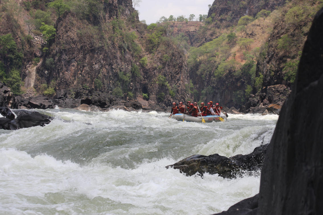 Within minutes we are a world away from the buzz of Victoria Falls town. At the base of the trail, our rafts await us in a large pool on the Zambezi, and it is here that you will be given a safety talk. The first part of any rafting experience is very much a learning exercise and after a few practice runs we nudge our boats into the current and drift down-stream to challenge the legendary rapids of the Zambezi. There is no gradual build up! The 23 km you will raft today includes renowned rapids such as ‘Stairway to Heaven’, ‘Gulliver’s Travels’ and ‘Oblivion’. This is the wildest section of the Zambezi river.