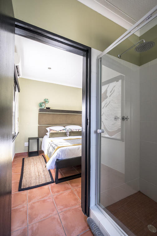 The rooms are situated at the foot of the fossilised dunes overlooking grassy savanah's or the base of the dunes. This family room has 4 beds in it, en suite bathroom (shower), air-conditioners and a veranda.