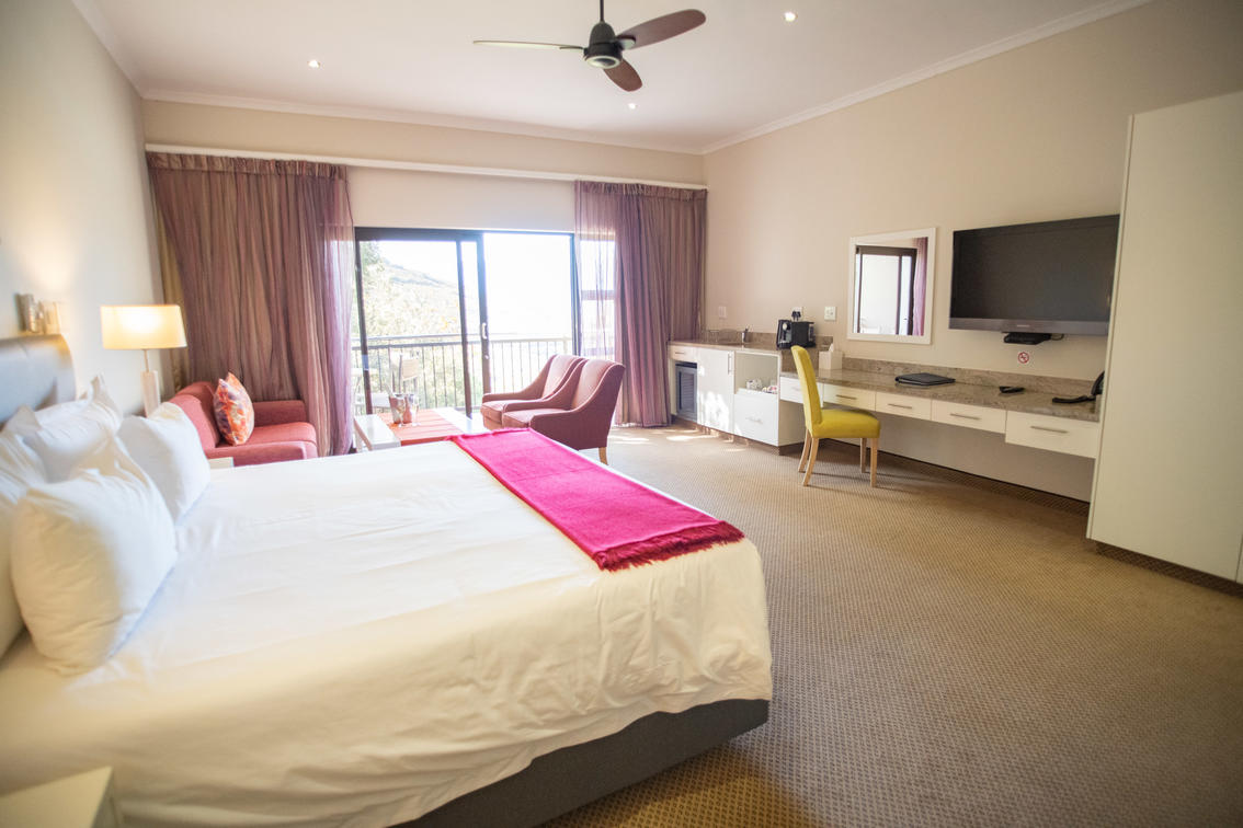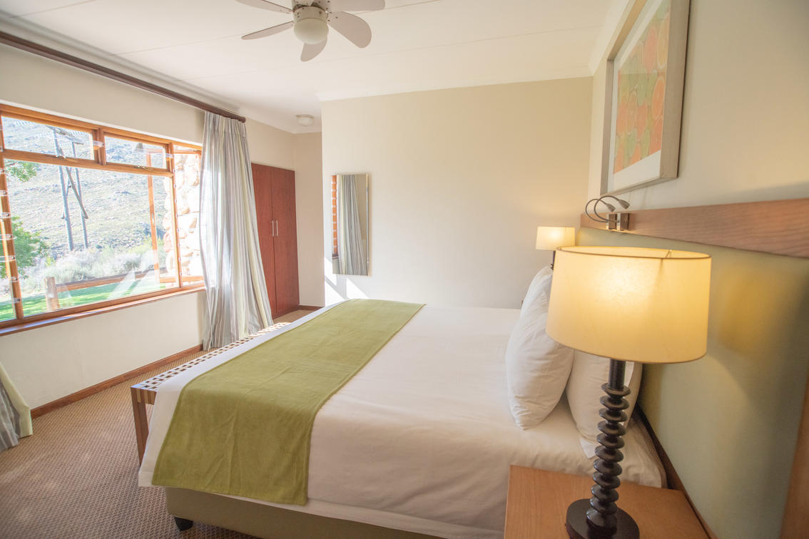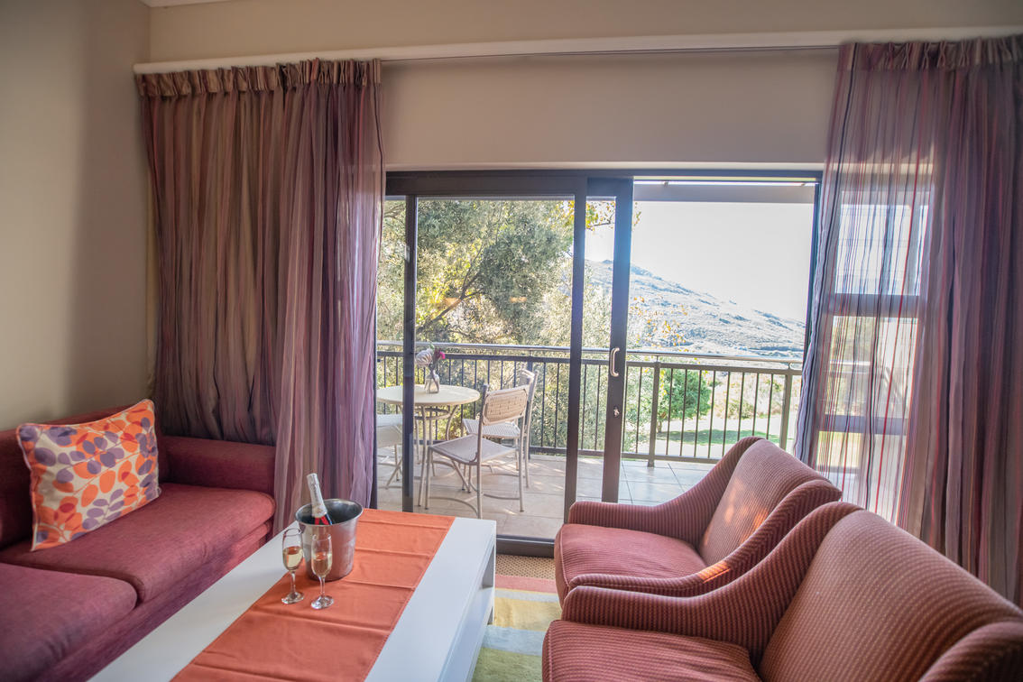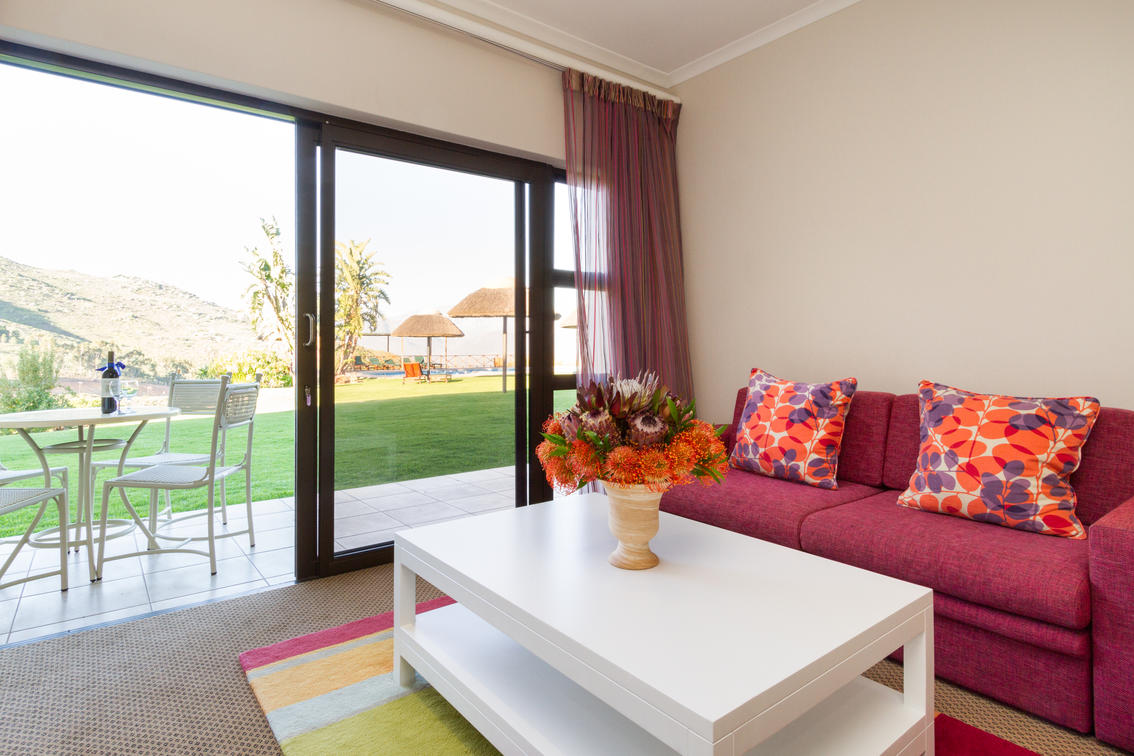 These units comprise two bedrooms with one shared bathroom. A great choice for families, this suite offers mountain vires and a patio with a seating area that leads out into the lush, flower-filled Piekenierskloof Mountain Resort garden.