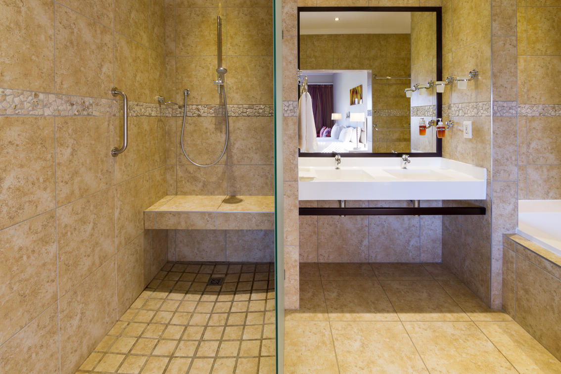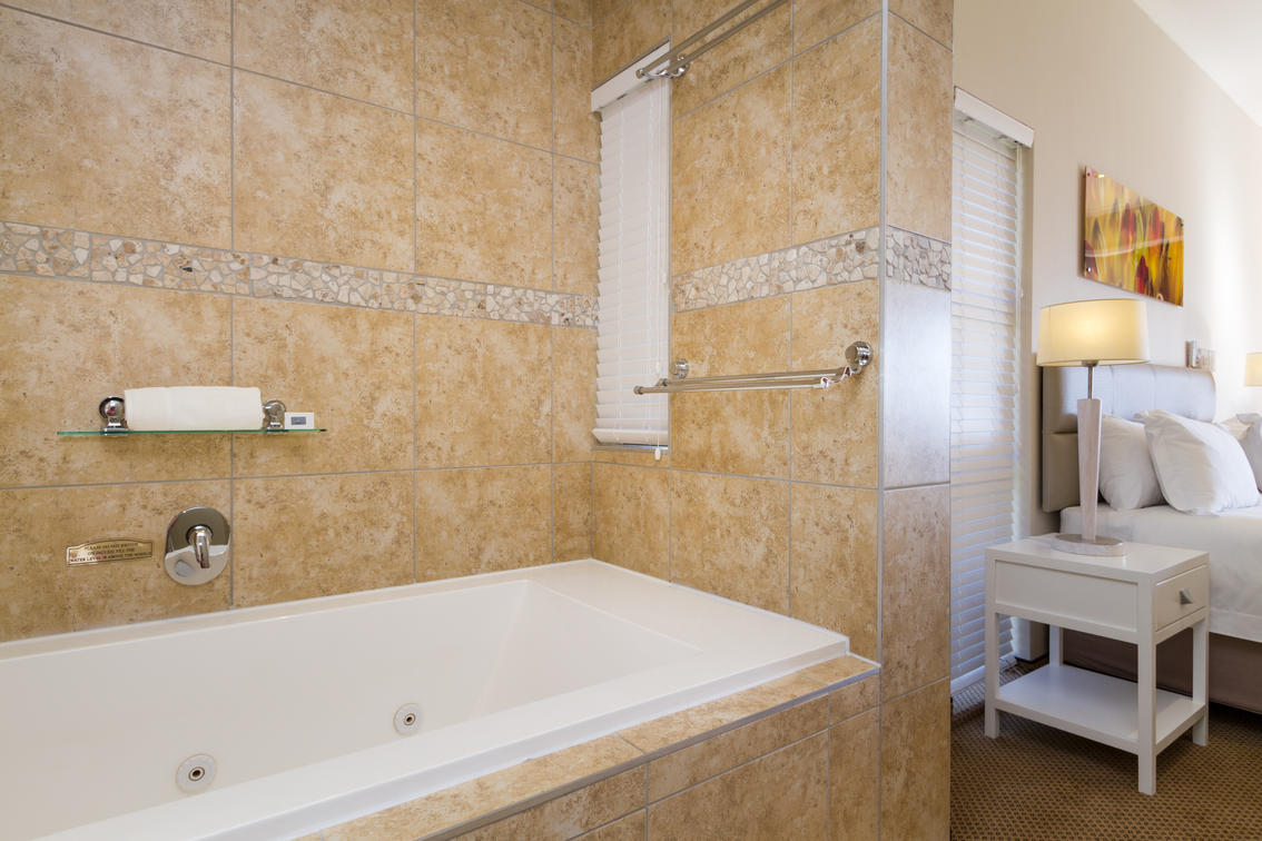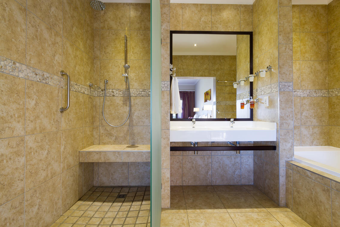 An open-plan bathroom with a Spa Bath and walk-in Shower