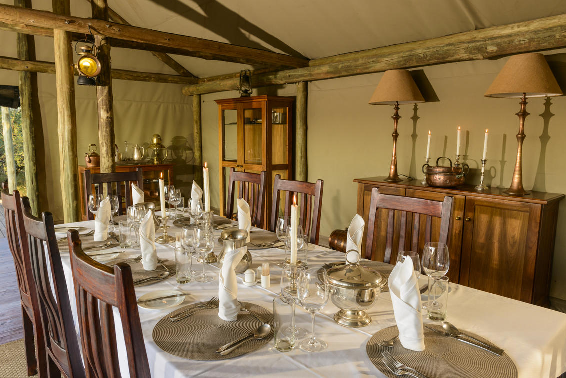 Dining at Plains Camp, home of Rhino Walking Safaris