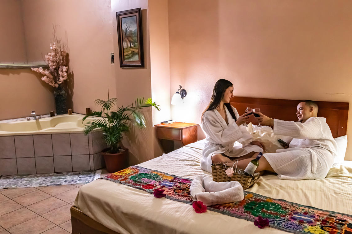 Our special room has a King size bed, mini bar, private bathroom, air conditioning, screen and cable, Jacuzzi and special decoration with candles, robes and wine glasses, a relaxing atmosphere. It is spacious and comfortable, it is located on the second level, with easy access to our garden terrace with beautiful views of the Arenal Volcano, where it is possible to sunbathe, read, enjoy a snack or enjoy good company!