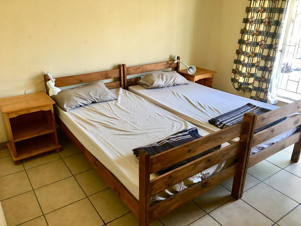 The comfortable and spacious farm house has a large dining, lounge and kitchen area, as well as 4 bathrooms and 7 large bedrooms. One of the bedrooms is fitted with a 2 single bunks which can be configured as single or double sleeper. The bathrooms have warm and cold running water and standard flush toilets. There is a large dining area with a computer desk, outside verandah and ‘braai pit’ for barbeques. The fully-equipped kitchen has a stove, oven, microwave, fridge and freezer.