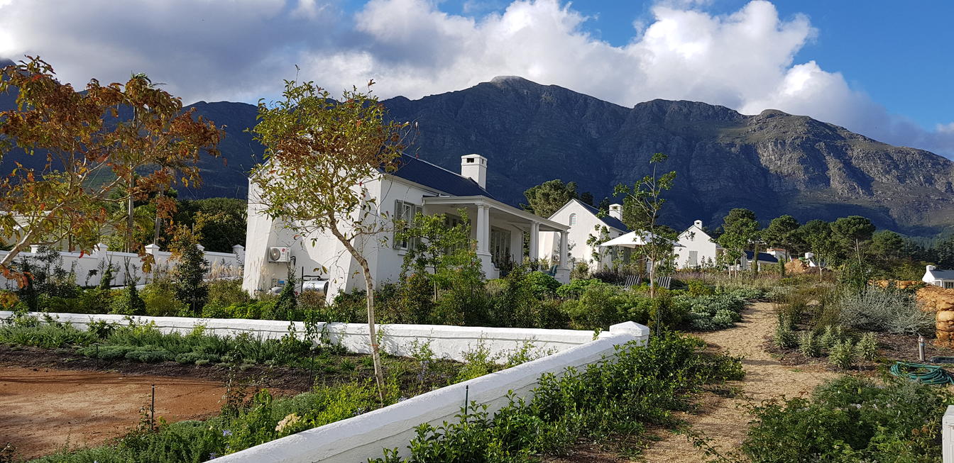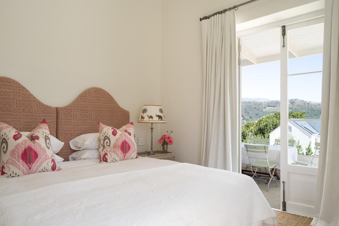 These are stylish one-bedroom cottages which have an outdoor veranda living and dining area and small private swimming pool with spectacular views of the Franschhoek mountain range.