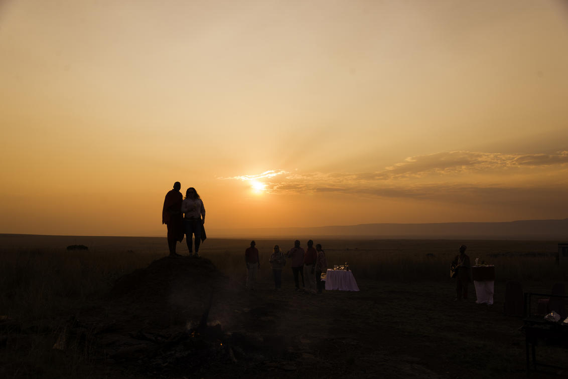 Please join us for a classic safari sundowner 'bubbly cocktail', on Lookout Hill with panoramic views across the Mara plains. The event includes a sundowner with hot and cold canapés and a full bar. It’s a traditional Maasai welcome that includes being greeted by the elders as well as traditional dressing and entertainment by a local guitarist and traditional Maasai dancers (by request and subject to a fee). Beverages are charged as per consumption.