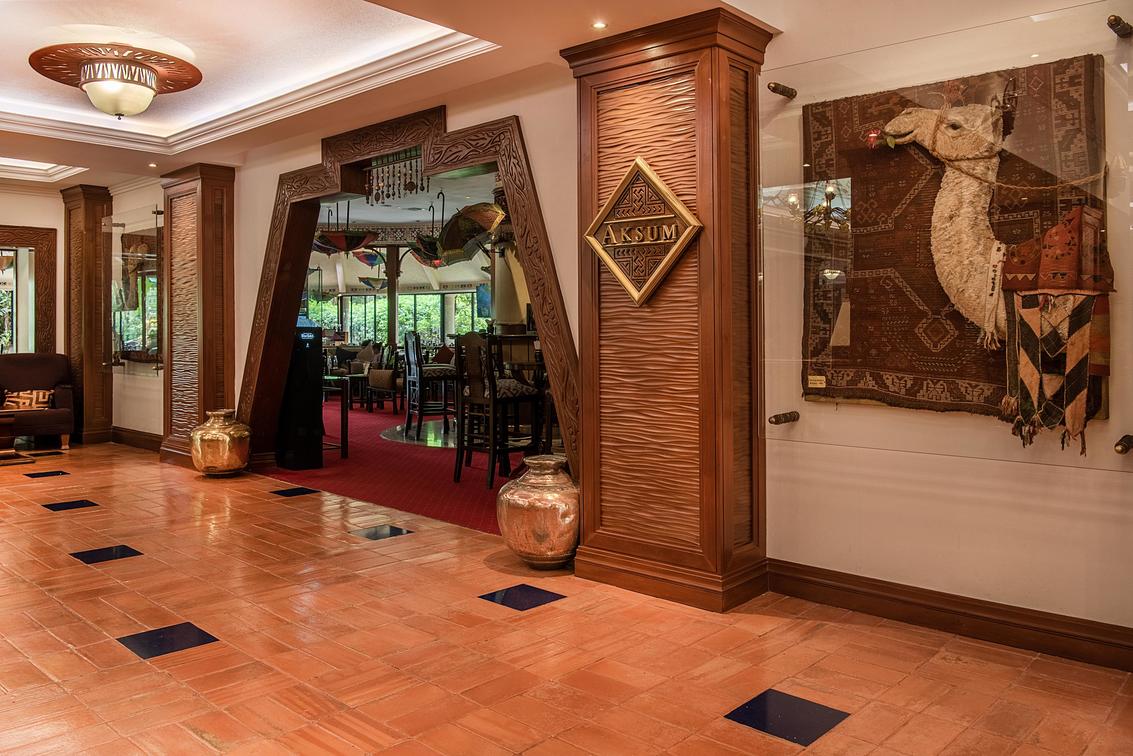 Opening directly off the reception and overlooking the charming gardens of the hotel’s extensive grounds is the Ethiopian-inspired Aksum Bar, whose walls are decorated with classic Ethiopian icons and whose ceiling is hung with hundreds of gold-edged umbrellas. Offering an unrivalled sports entertainment with a range of drinks and bar snacks, the Aksum also features a garden terrace and is the venue for a series of musical evenings that also feature live bands.