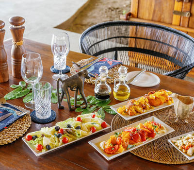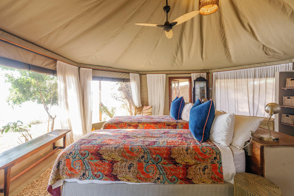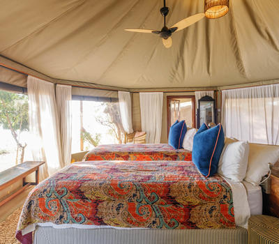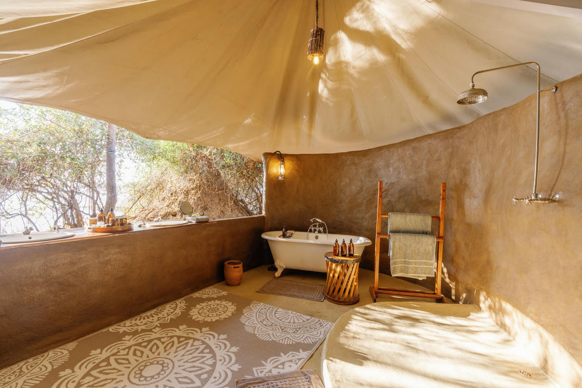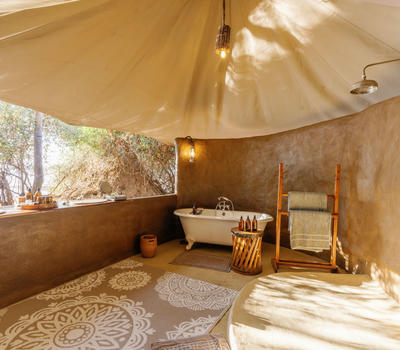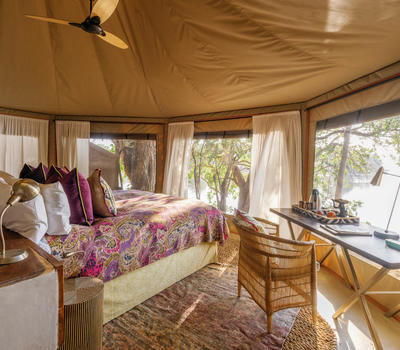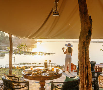 The Albida Suite sleeps four guests in two spacious bedrooms with elegant en-suite bathrooms, set on either side of a private dining room and lounge area. The whole suite is open air, with views of the confluence of the Chongwe and Zambezi Rivers on one side and the Zambezi Escarpment on the other. With privately guided activities, it is ideal for families or friends travelling together.