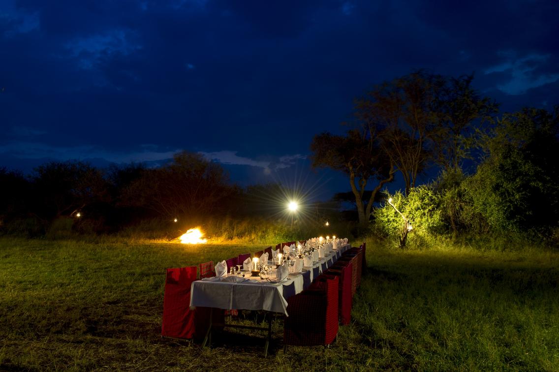 Typically, the Serengeti bush dinner takes place at a scenic location on the plains. Or it can occur at our own dedicated bush dinner site, which stands high on a hill overlooking the migration corridor. Timed to coincide with the setting of the sun, which on the Equator is around 6:00 p.m., the bush dinner will commence either with a game drive or a short stroll to our hilltop site.
