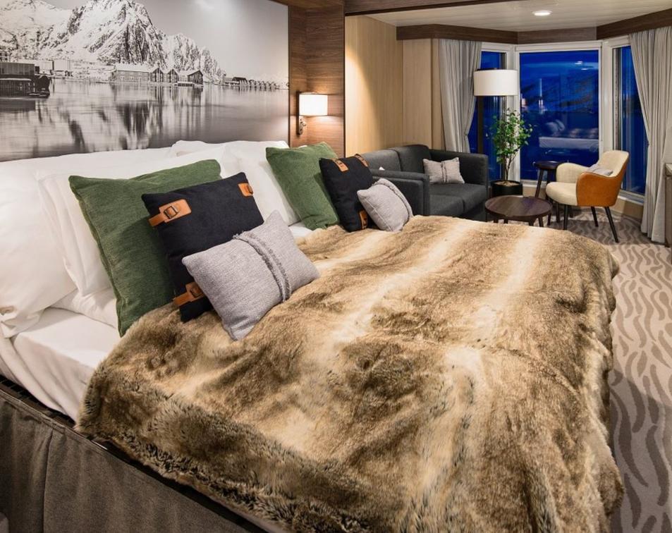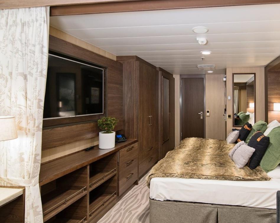 The Expedition Suites are the most luxurious accommodations on the ship. The cabins are situated on the upper deck and feature double beds, a seating area with a TV, and a bathroom with a shower and WC. The suites also provide complimentary cabin kits with bathrobes, slippers and more.