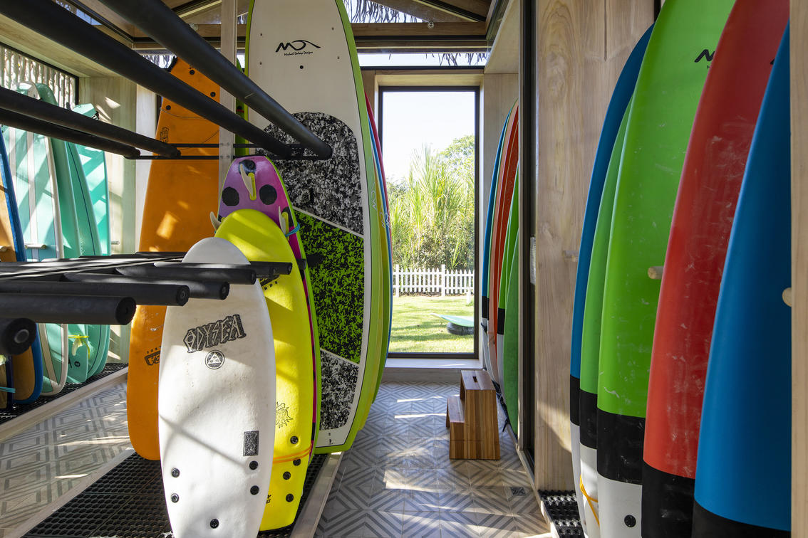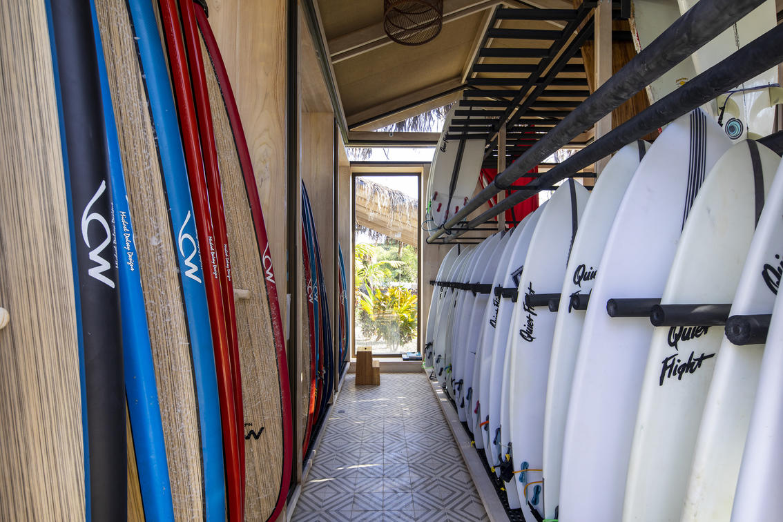 The Surf Club is the surfers paradise! The Club is located in between The Gilded Iguana Hotel and the beach, only steps away from the surf! Surf Club Membership includes Full Access to all Surf Equipment (Netflix Style). We have over 150 surfboards, all designed for playa guiones and the surrounding beaches of Nosara! We are constantly updating our board rooms to have the highest quality equipment for our members. We have boards for every level of surfing, from day one beginners, to seasoned veterans that are ready to rip! We also have SUP's, boogie boards, skim boards, and beaters (hybrid between a boogie board & surf board). Surf Club Membership also includes personal board storage in our air conditioned board rooms, located only steps from the beach. We offer daily, weekly, monthly, and yearly memberships. Membership also gives you full access to surf club amenities like the locker room, changing stalls, showers, surf lounge, and Juice Bar. Becoming a member gets you discounts on surf lessons, juice bar, restaurant, iguana shop, spa, and MTB rentals / tours.