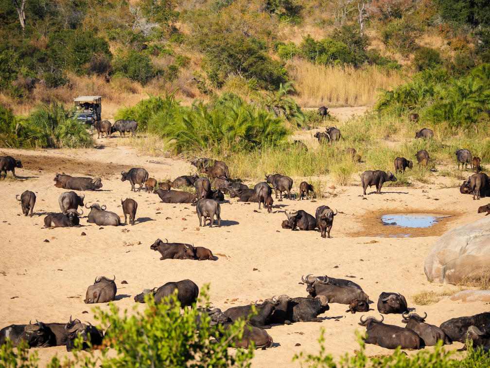 At dusk, a vantage point is chosen overlooking one of the many breathtaking vistas of the Kruger National Park. Sundowners are enjoyed while tales of the bush are told and a glimpse of what this unique wilderness has to offer is seen while being entranced by the ever changing colours of the sky as the sun slips into the timeslot of tomorrow. En route back to the lodge, nocturnal animals such as leopard, hyena and lion are often seen.