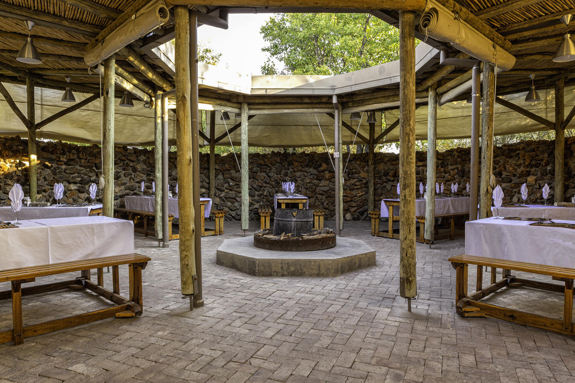 At a typical Namibian Rural Village families are divided into three areas when dining. Traditionally one area is dedicated to men, one to women and the other for the elderly and children. When Etosha Village was designed, we remained true to this tradition and created three different dining areas at our restaurant, but of course not split into gender groups.