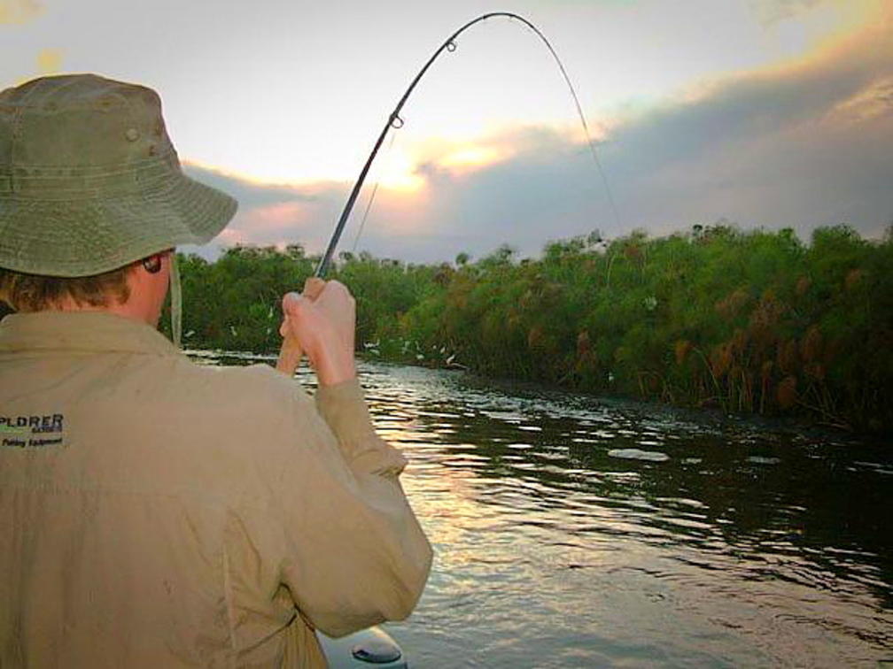 Spend the day fishing the Okavango River for tigerfish and various bream species on fly or light spinning lures during the annual Barbel Run. All fishing is led by experienced guides on a high quality boats.