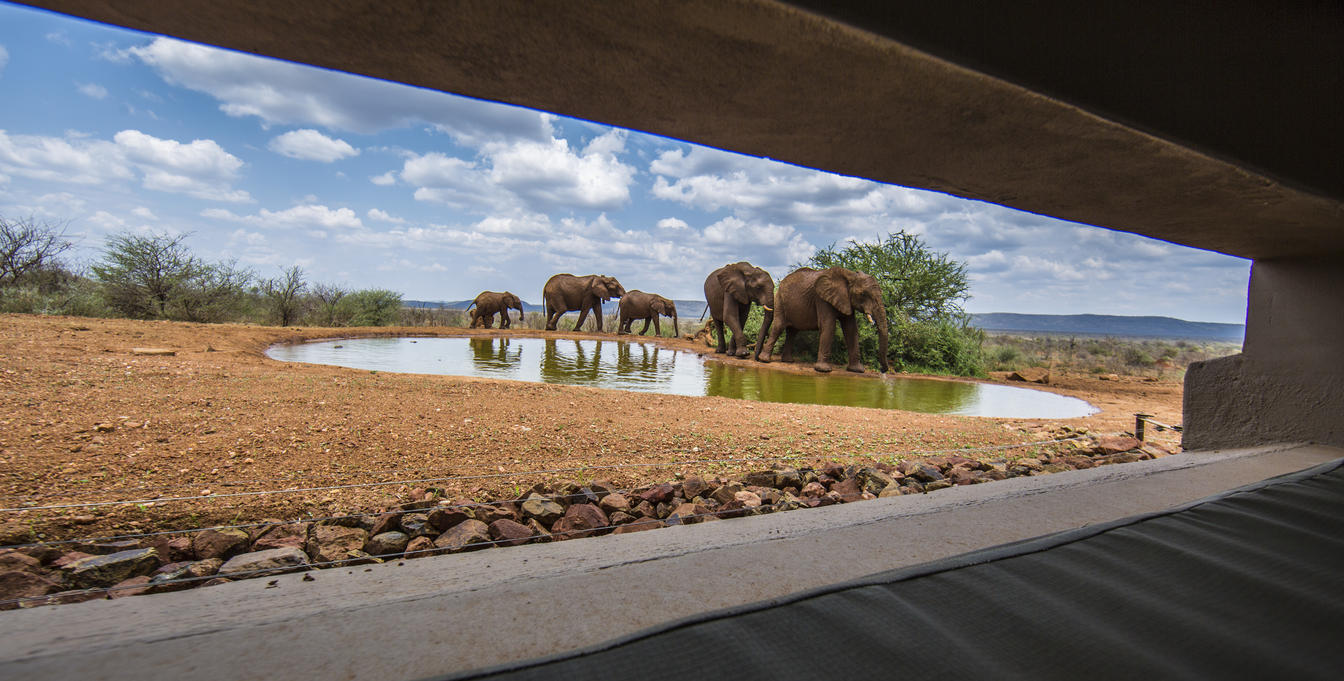 Molori Safari has a luxury hide with an adjoining Gin & Whiskey bar overlooking the water hole. It's a favourite spot for guests to observe wildlife at close proximity. It offers keen photographers opportunities to take intimate images of elephants, lion, buffalo and amazing birdlife that pop in to drink at the waterhole. It's also a perfect setting for meals, high teas and sundowners.