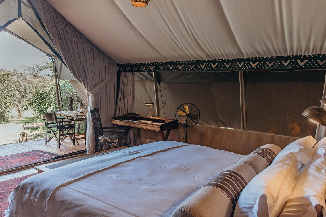 It is safari chic with five light and airy, spacious canvas tents, each with en-suite bathrooms where you enjoy hot water from huge brass safari showers. It is set down low, hidden from lights and noise from other camps or properties or any sign of mankind. Under the grove of Africa ebony trees, its humble main area is lit by lantern and candlelit, simple in design, but just enough for all the comforts.