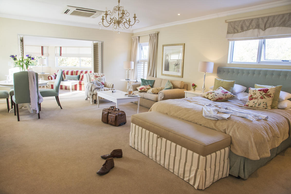 There are four Elegant Suites at The Last Word Constantia. These rooms are 95m² (including the bathroom), they have separate lounge areas, a complimentary mini bar and a separate shower, bath and toilet.