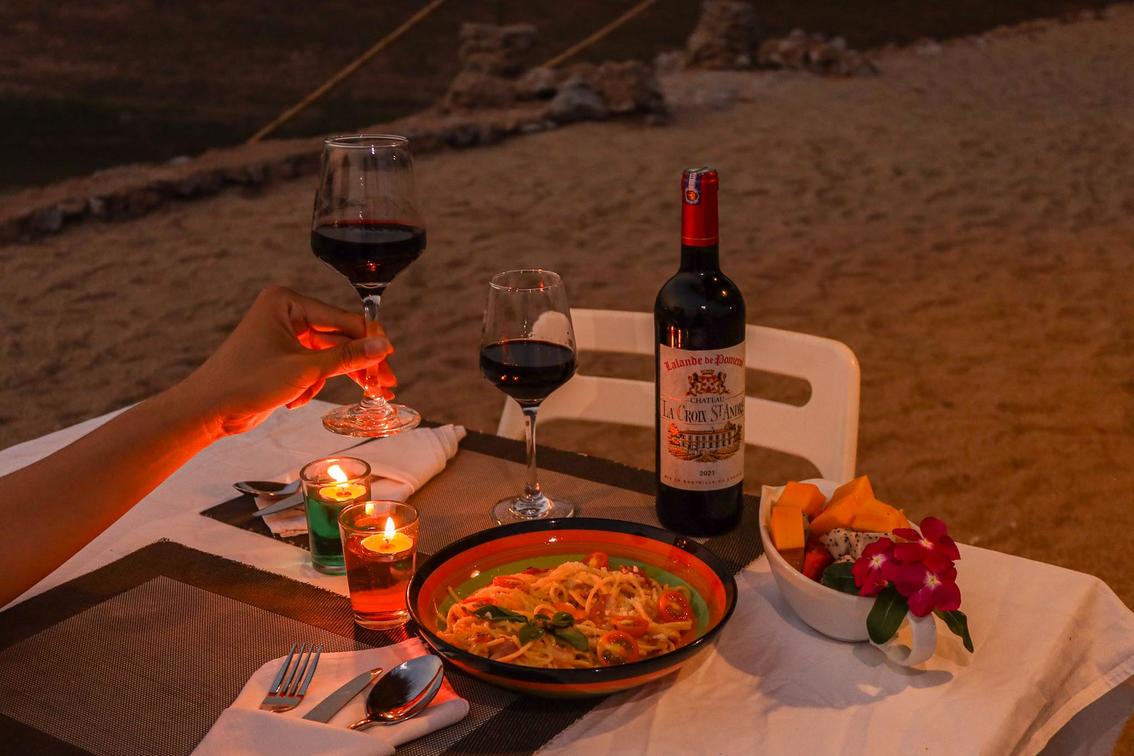 Intimate, candle-lit setup with dedicated service on the beach or on your suite terrace. Chef’s set menu highlighting Lao & international flavors; final menu confirmed at booking (vegetarian available). Ideal for anniversaries, or special occasions.