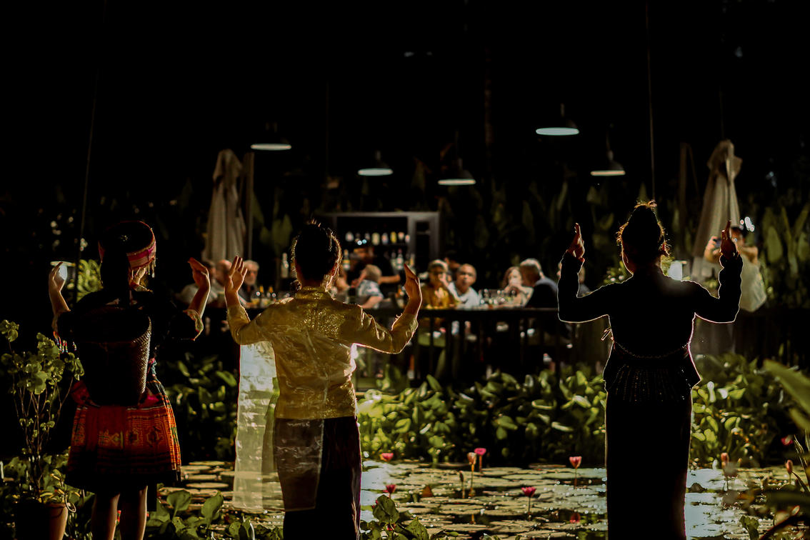 Performance given on our platform on the lotus pond for guests to enjoy from our outdoor terrace.