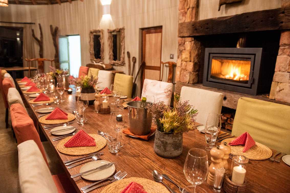 Lehele Lodge has one intimate dining area overlooking a beautiful valley and watering hole. The Lodge also has a wrap around deck and a viewing deck for one to dine on on warm mornings and evenings. Guests are treated to scenic veranda breakfasts and lunches, and elegant 3 course set menu evening meals, romantic picnics and scenic sundowner spots as the sun dips behind the mountains. Our delicious homemade cuisine is served enjoying the spectacular setting. Our wine list comprises of fantastic South African wines from the Western Cape area, with food and wine pairings suggested nightly as part of the menu. Guests are highly recommended to advise of any dietary requirements and/or allergies at the reservations stage. Children’s menus are provided for lunch and dinner.
