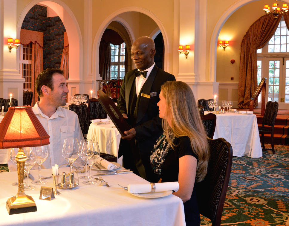 Stanleys Terrace is a must for light meals throughout the day. Traditional high tea is served every afternoon, with spectacular views of The Victoria Falls Bridge and the Victoria Falls themselves. Stanleys Terrace is the ideal location for sundowners and offers a table d'hôte menu with an a la carte menu on offer after 1100hrs. Stanleys Terrace has a maximum seating capacity of 100 pax.