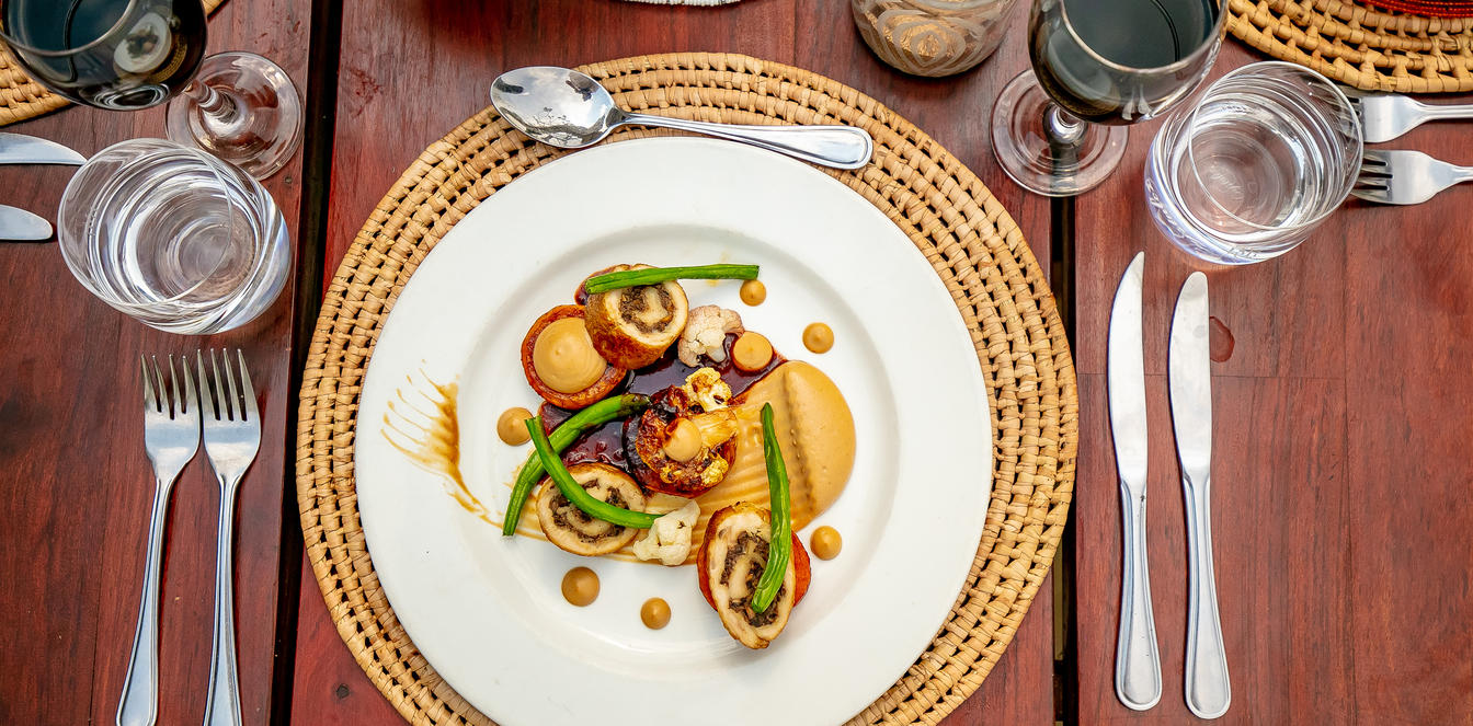 The hub of the camp is the signature “A” frame which houses the dining area. Most meals are served in unsurpassed elegance and style around our magnificent 22 seater teak dining room table or in a private setting out on the deck under the moonlight. We try to cater to our guests' needs wherever we can and our incredible in-house chefs are able to fulfill many dietary requirements.