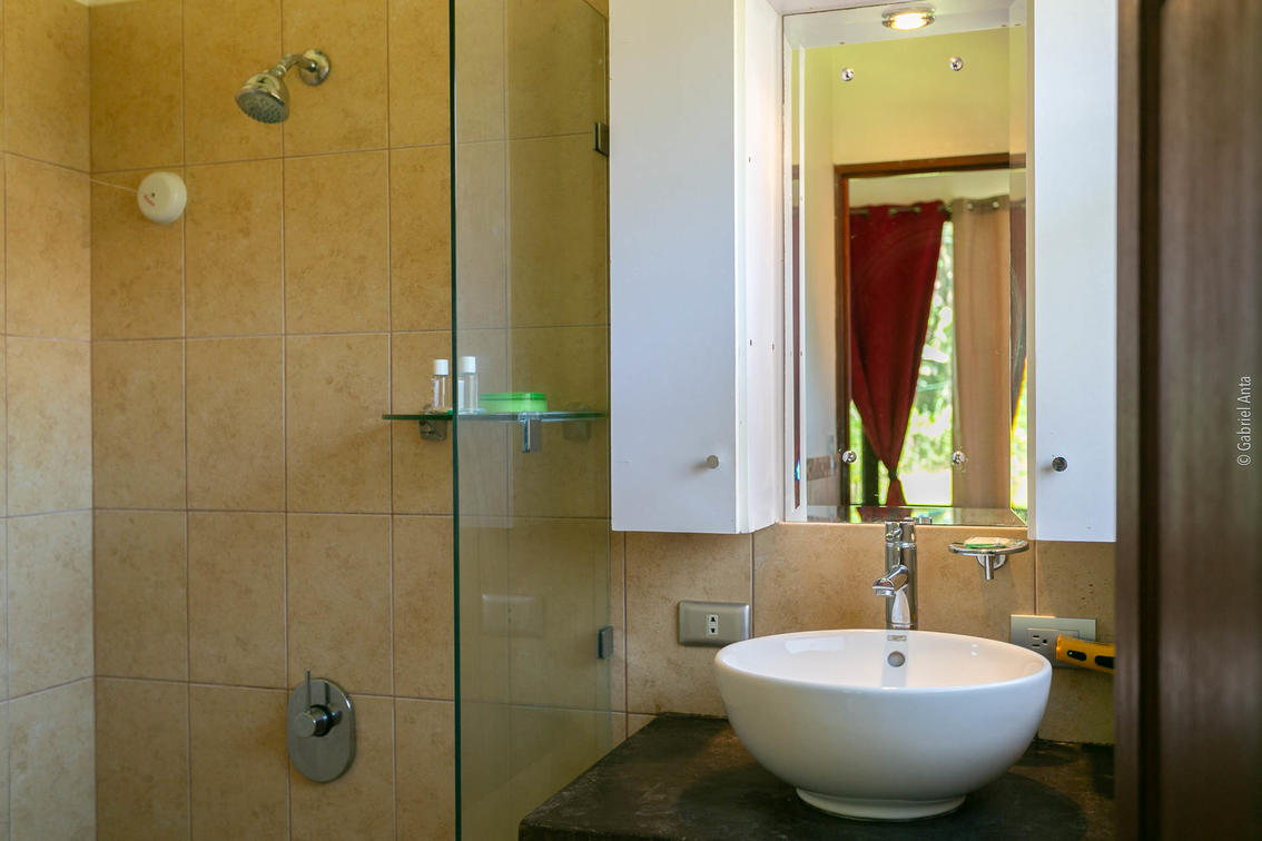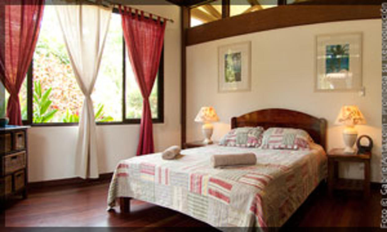 One full-size double bed and one single bed, fan, shower room (hot water, amenities), toilets, wi-fi (fiber optics), security safe. Garden view, large terrace.